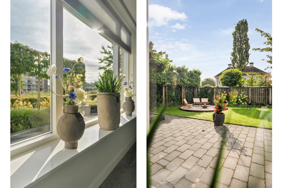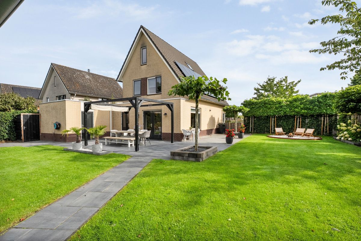 De verzorgde en ruime achtertuin is gelegen op het zuidwesten en biedt volop mogelijkheden om te genieten van zon én schaduw. De tuin heeft meerdere gezellige zitgedeeltes, een waterbron en een overkapping met berging. Een heerlijke plek om te ontspannen, te tuinieren of samen met familie en vrienden te genieten.