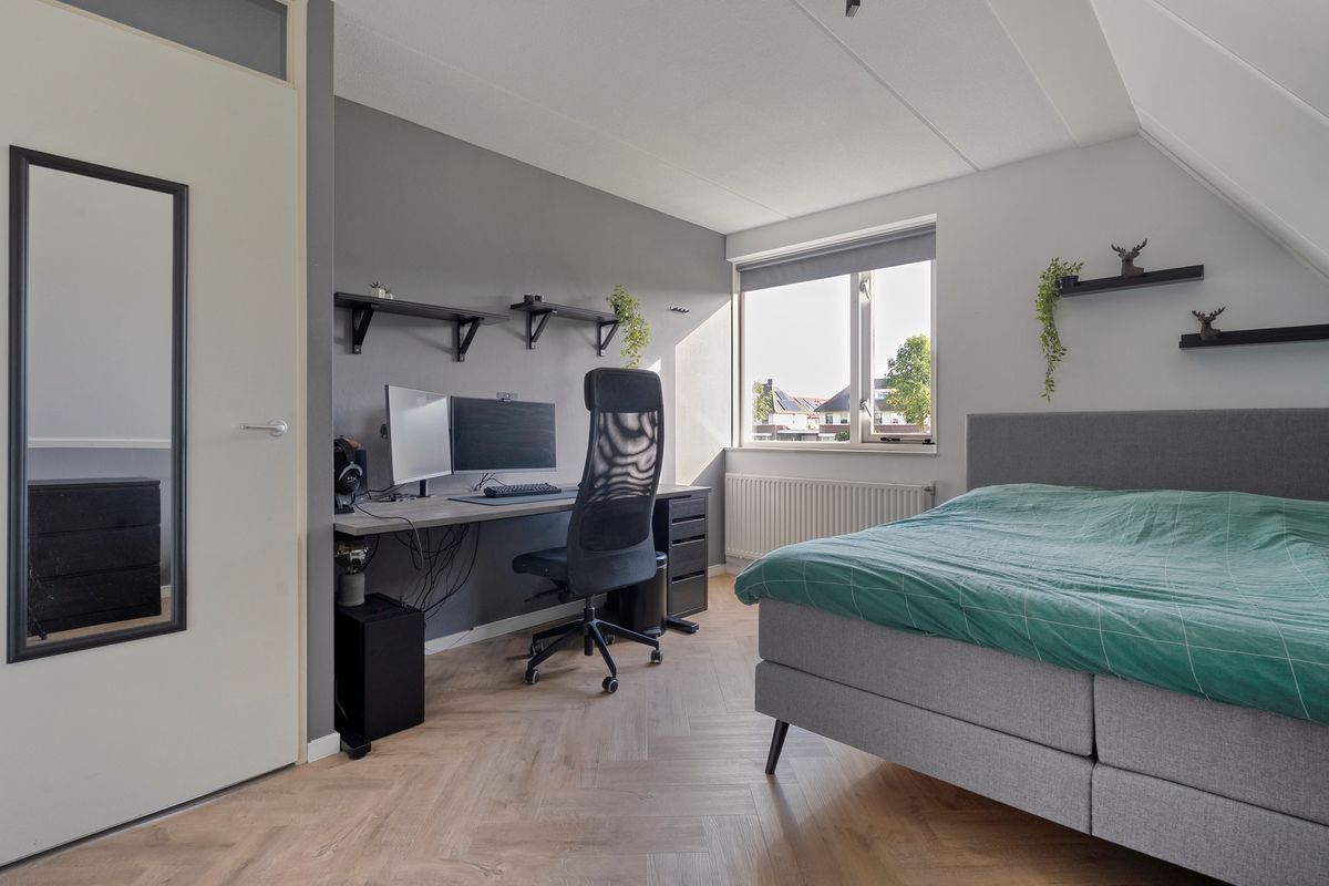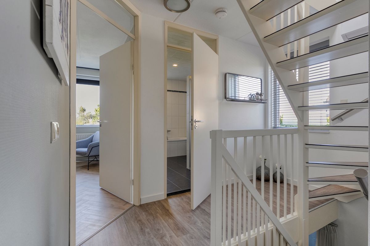 Vanaf de overloop bereik je drie ruime slaapkamers, elk met volop lichtinval en mogelijkheden om er een fijne slaap-, werk- of hobbykamer van te maken. De badkamer is compleet uitgerust met een wastafel, een tweede toilet, een heerlijk ligbad en een inloopdouche. Op de overloop is recent een airco geplaatst.