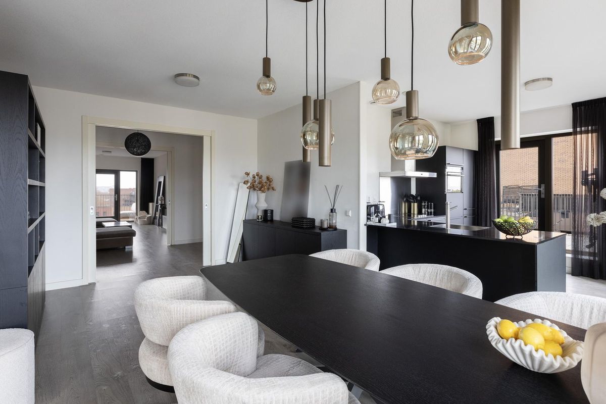Tussen de woonkamer en keuken vind je de eetkamer: een volwaardige, lichte ruimte waar je een grote tafel kwijt kunt. De combinatie van daglicht, uitzicht en de verbinding met de keuken maakt dit echt de plek waar je samenkomt. Diners, thuiswerkdagen, spelletjesavonden, het kan hier allemaal.