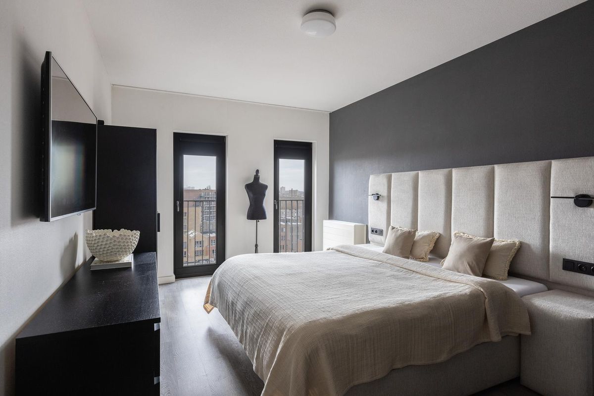 Via de openslaande deuren stap je het balkon op: compact, maar met een groots uitzicht dat nooit verveelt.