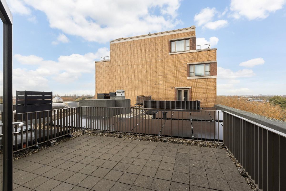 Aan de keuken grenst een groot terras van ruim formaat. Ideaal voor een loungeset, planten of als zonplekje midden in de stad. Het is een rustige plek, omgeven door de binnentuinen en daken van de buurt. Dit extra stuk buitenruimte is echt een luxe in het dagelijks leven.