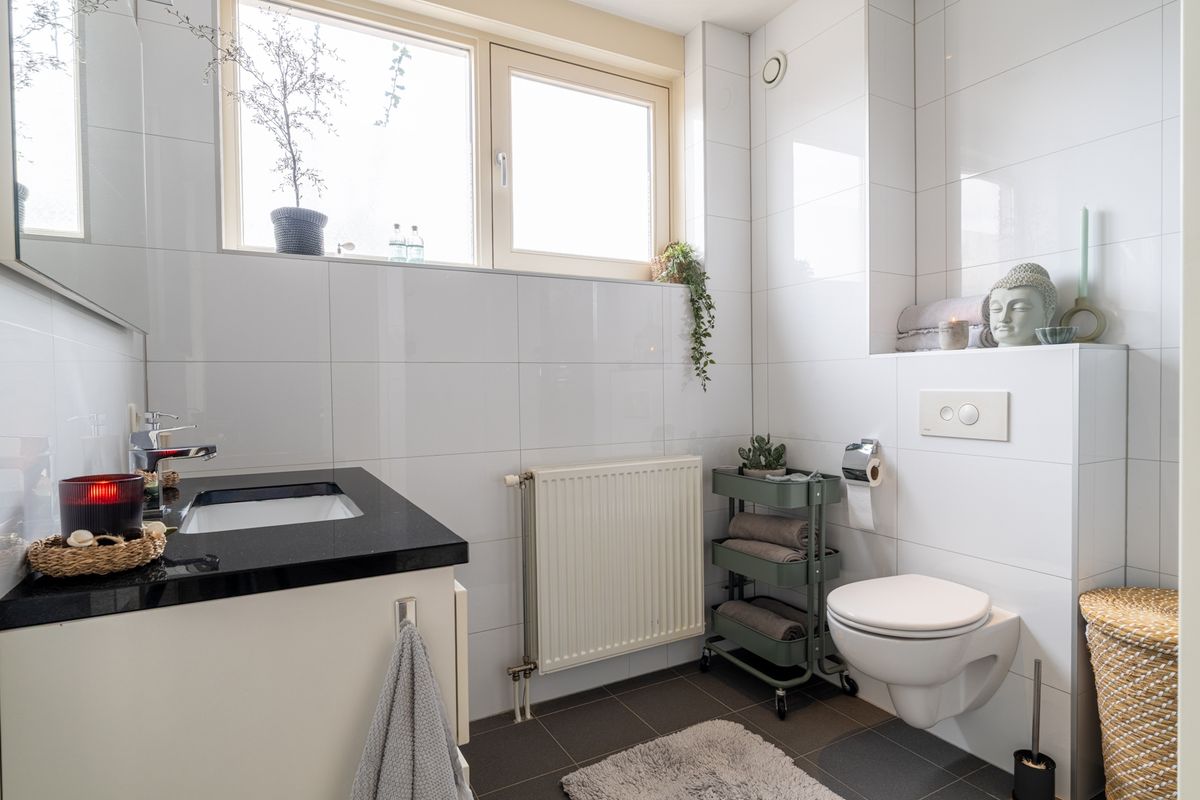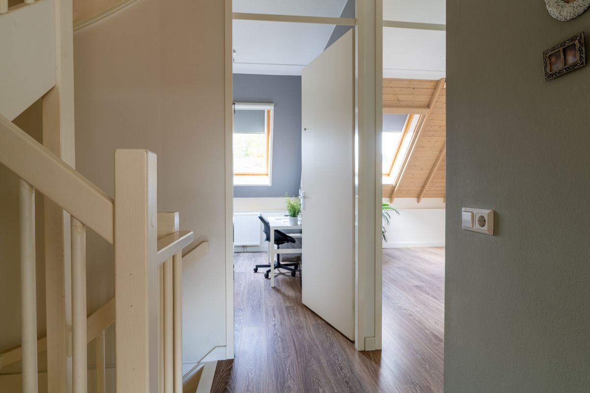 Boven tref je drie keurige slaapkamers aan, allemaal netjes afgewerkt en met prettige lichtinval. De ouderslaapkamer ligt aan de voorzijde, heeft een dakkapel en zelfs een inloopkast – lekker praktisch! De twee slaapkamers aan de achterzijde zijn ideaal voor kinderen, gasten of als thuiswerkplek. De badkamer is modern en comfortabel v.v. een ruime inloopdouche, zwevend toilet en een fraai wastafelmeubel. Alles strak, fris en tijdloos. De vaste trap brengt je naar de tweede verdieping, waar je de cv-opstelling, wasmachine- en drogeraansluiting én de unit van de mechanische ventilatie vindt. Wil je meer ruimte? Een dakkapel is eenvoudig te realiseren.