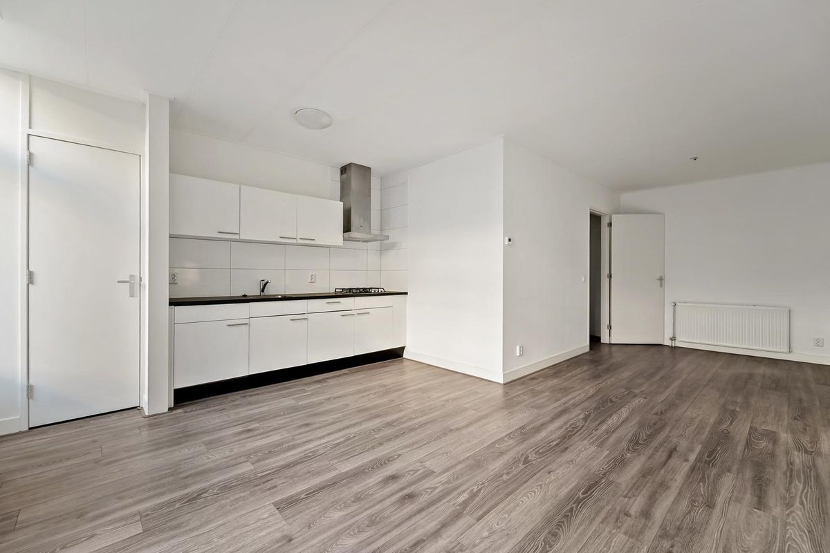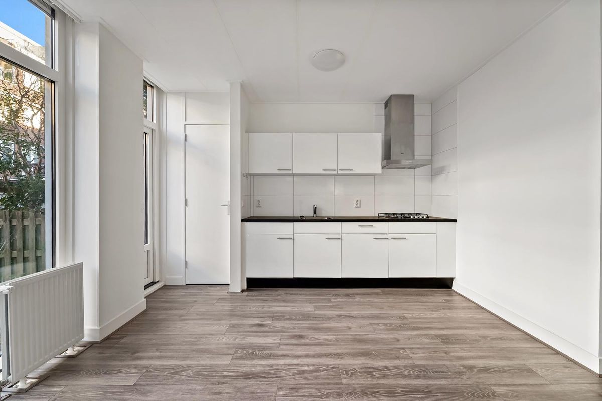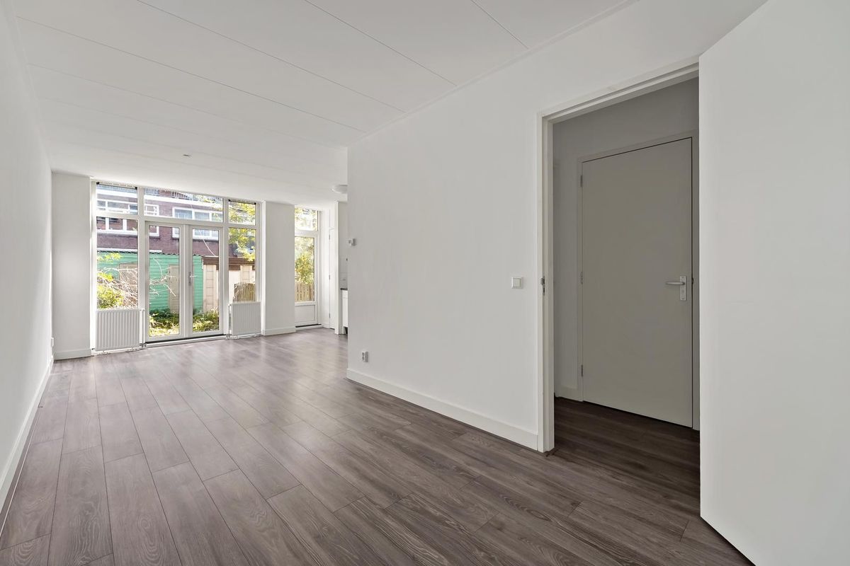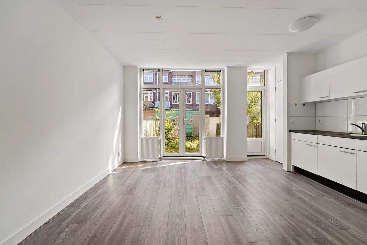 Eigen entree, hal met meterkast en toilet voorzien van vrij hangend closet en fonteintje, ruime lichte woonkamer met moderne open keuken voorzien van inbouwapparatuur, moderne badkamer voorzien van wasmachine aansluiting, douche en wastafel, slaapkamer aan voorzijde. Dubbel openslaande deuren vanuit de woonkamer naar de tuin die maar liefst ca. 45 m².