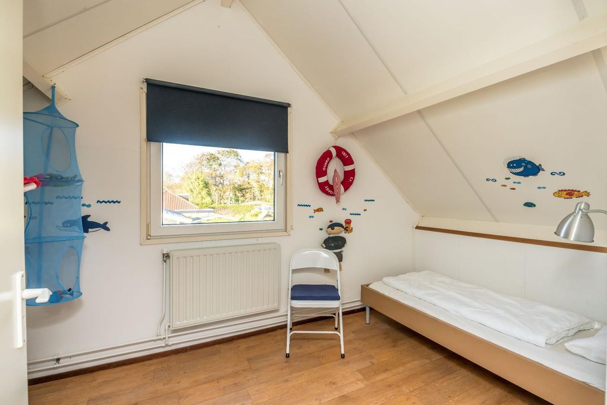 Op de begane grond bevindt zich tevens een slaapkamer met tweepersoonsbed en kledingkast. De badkamer is voorzien van douche, wastafel en toilet.