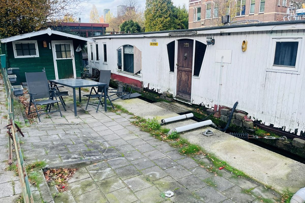 Deze woonark heeft jarenlang dienst gedaan als fijne thuishaven, maar is de laatste jaren slecht onderhouden. Ons advies is om de woonark te slopen en het casco (na toestemming van de gemeente) te gebruiken als terras. Hierna kan er een nieuwbouw woonark gerealiseerd worden met 1 woonlaag en maximaal 20 x 5 meter welke naar eigen inzicht ingedeeld kan worden. De locatie, de mogelijkheden en het vrije uitzicht maken dit echter tot een bijzonder aantrekkelijk project.