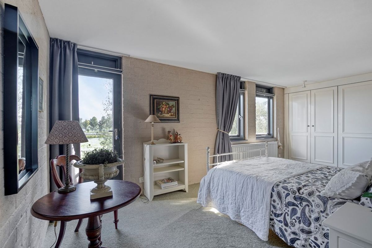 Op de tweede verdieping ligt een tweede slaapkamer die opnieuw verrast met uitzicht. Vanuit hier kijk je weids over de weilanden en geniet je elke ochtend van de rust en het groen. Dit maakt de ruimte niet alleen geschikt als slaapkamer, maar ook als inspirerende werk- of hobbykamer. Er is een extra ruimte aanwezig met wastafel en spiegel.