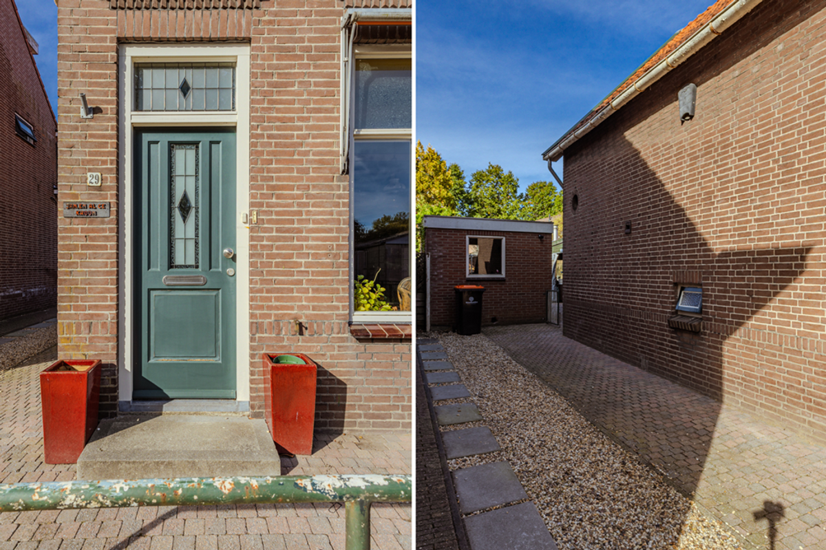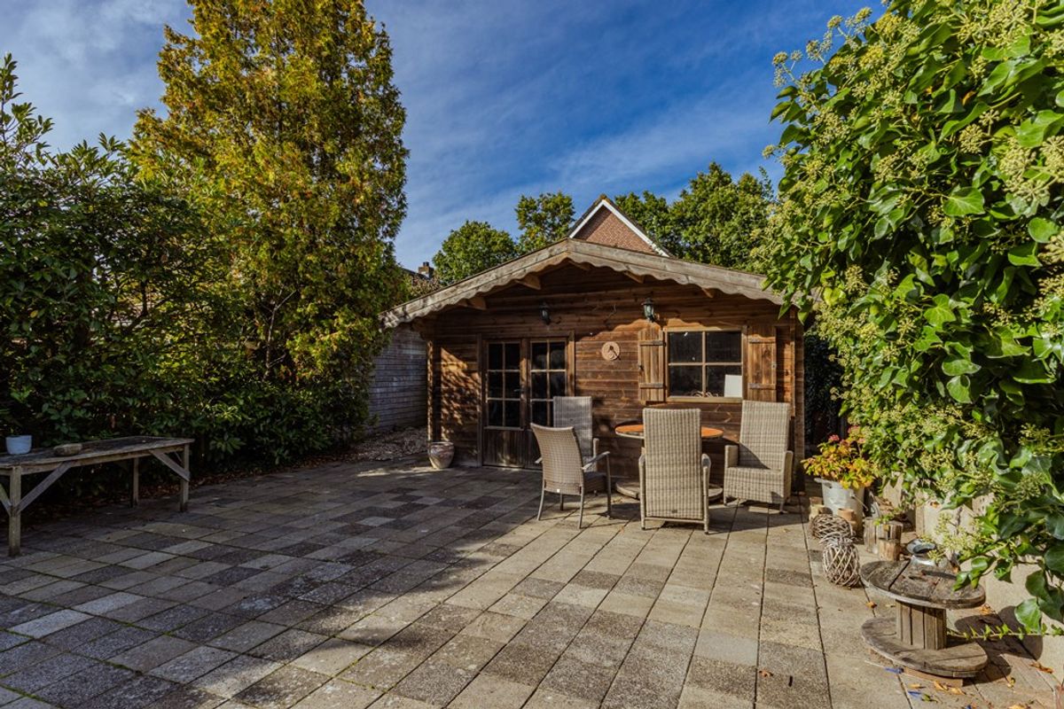 De diepe, op het westen gelegen achtertuin is een waar pluspunt: geniet hier van de middag- en avondzon. De tuin beschikt over een vrijstaande stenen berging, een ruim houten tuinhuis én een gezellige overkapping met zitgedeelte en houtkachel. Aan de zijkant van de woning is er bovendien de mogelijkheid om op eigen terrein te parkeren.