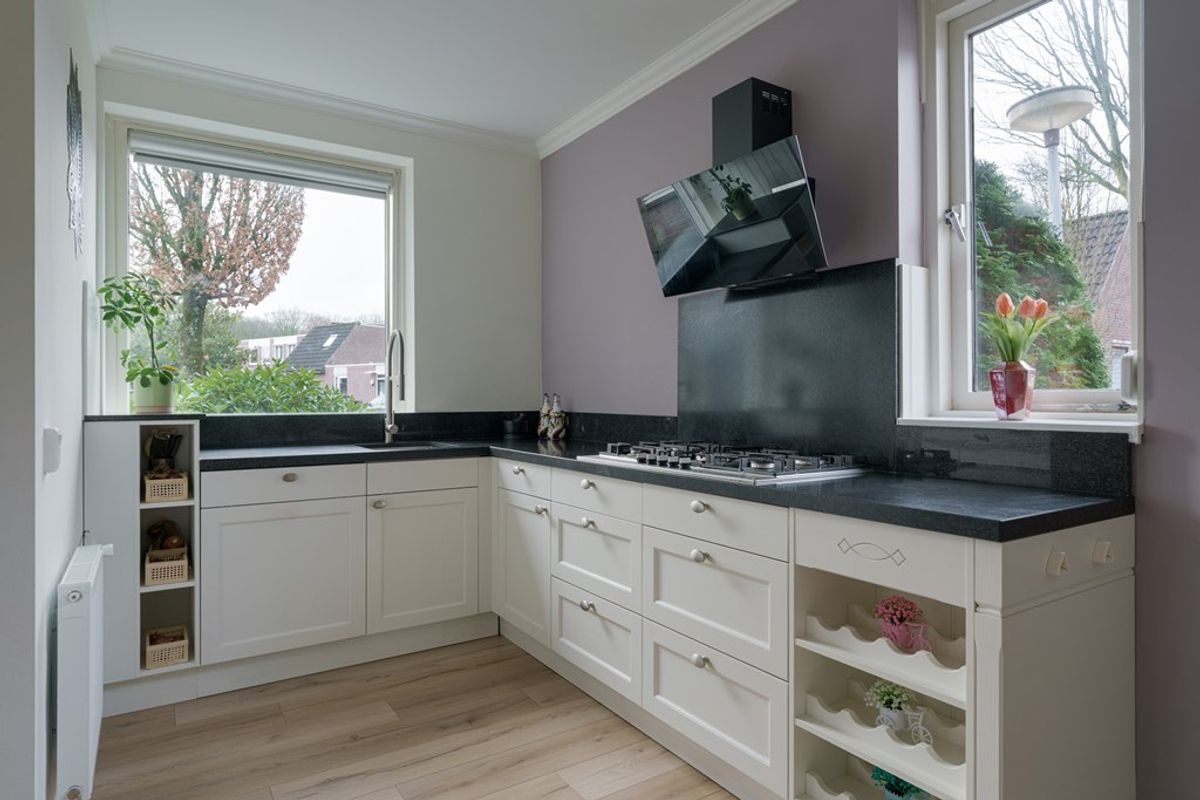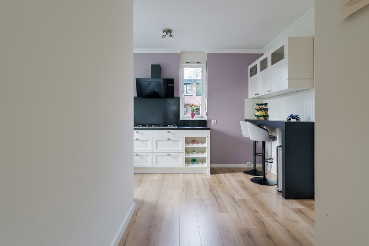 De semi-open keuken sluit naadloos aan op de woonkamer en is voorzien van diverse inbouwapparatuur, waaronder een combi-oven, gaskookplaat, afzuigkap, vaatwasser, koelkast en vriezer. Dankzij de praktische indeling en voldoende kastruimte is de keuken zowel functioneel als comfortabel ingericht.