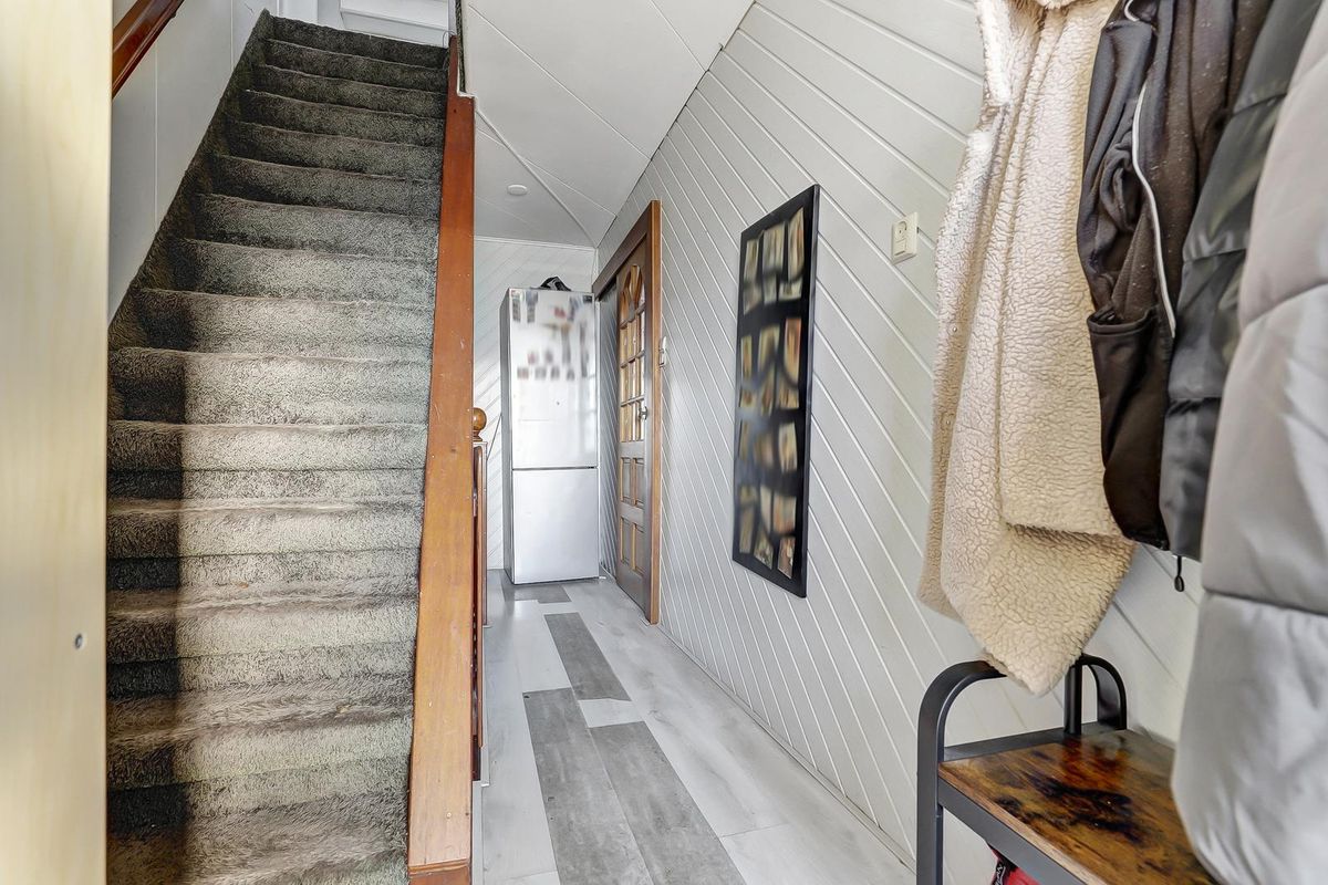 Afgesloten entree met hal, meterkast en trapopgang naar de woning.