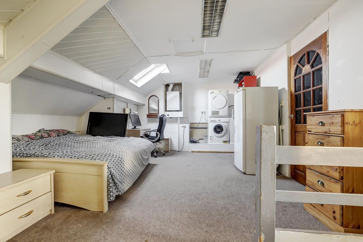 De ruime overloop biedt volop mogelijkheden, bijvoorbeeld voor het realiseren van een extra kamer of werkplek. Verder vind je hier een grote berging/inloopkast met aansluitingen voor de wasmachine en droger. De derde slaapkamer is royaal, heeft een dakkapel en vaste schuifwandkast.