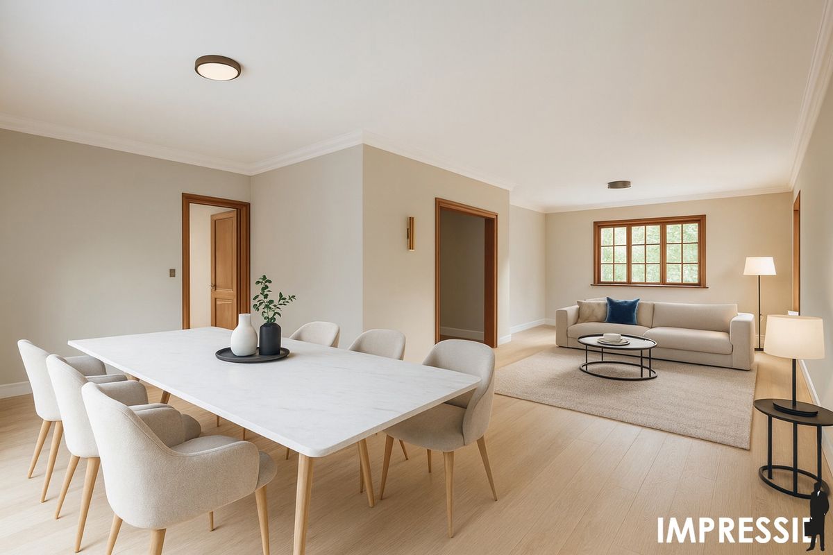 De riante woonkamer heeft een prachtig zicht op de tuin en geniet van natuurlijk daglicht.
