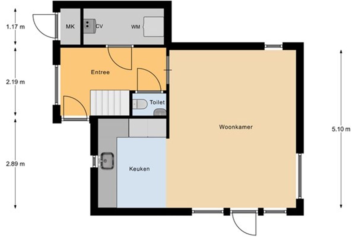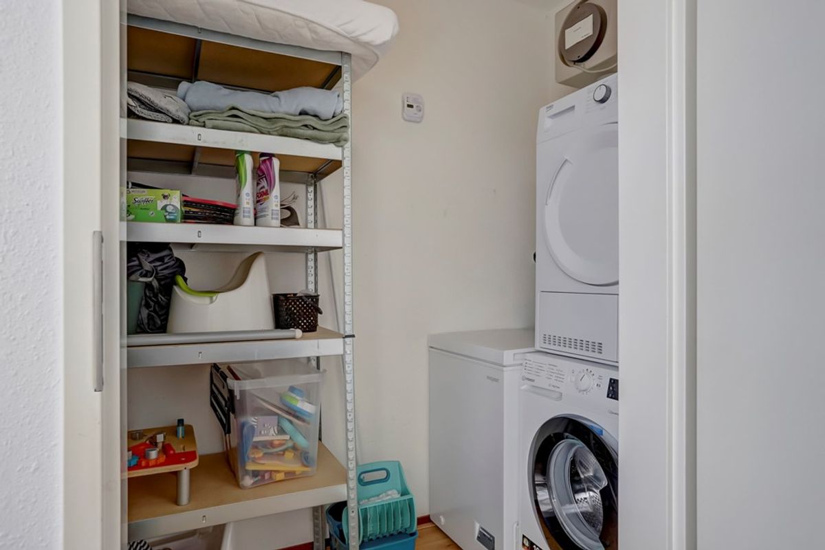 Via de entree is toegang tot het toilet en een wasruimte/bijkeuken. In de bijkeuken is veel opslagruimte, de Cv-ketelopstelling en de wasmachine- en drogeraansluiting.