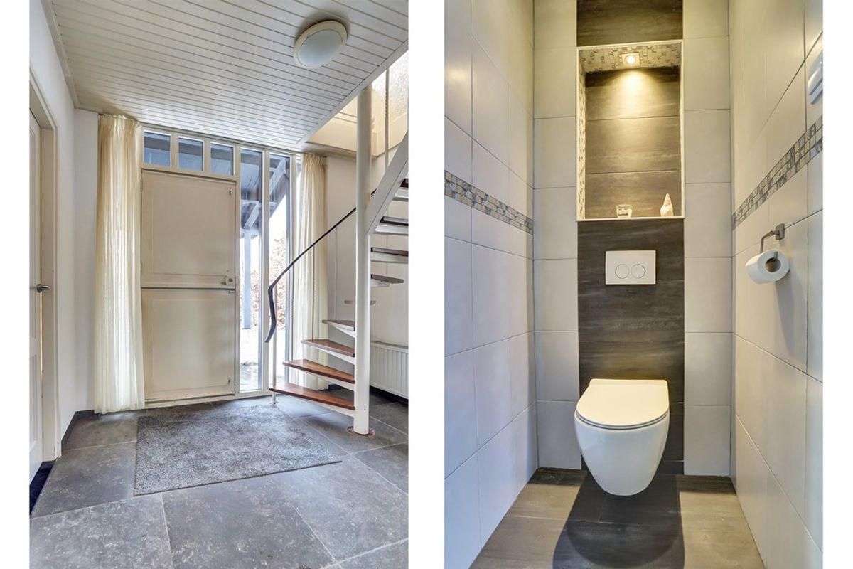 Via de entree komt je in de hal die toegang biedt tot de verschillende ruimtes op de
