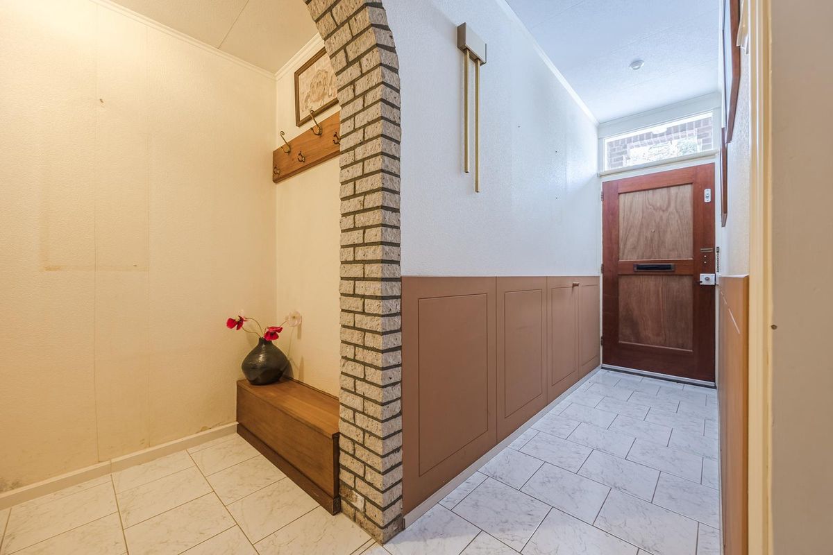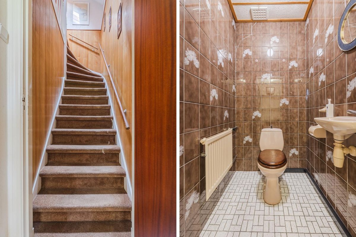 De ruime gang met tegelvloer is voorzien van een trap naar de 1e verdieping. Hier bevindt zich ook het toilet en de garderobenis. Vanuit de gang heeft u toegang tot de woonkamer.