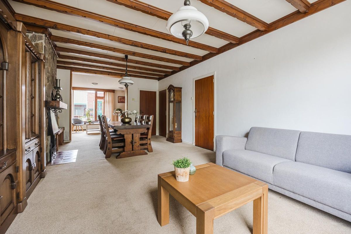 De heerlijk ruime woonkamer is voorzien van vloerbedekking en een sierhaard. Via de woonkamer heeft u toegang tot de kelder en leefkeuken.