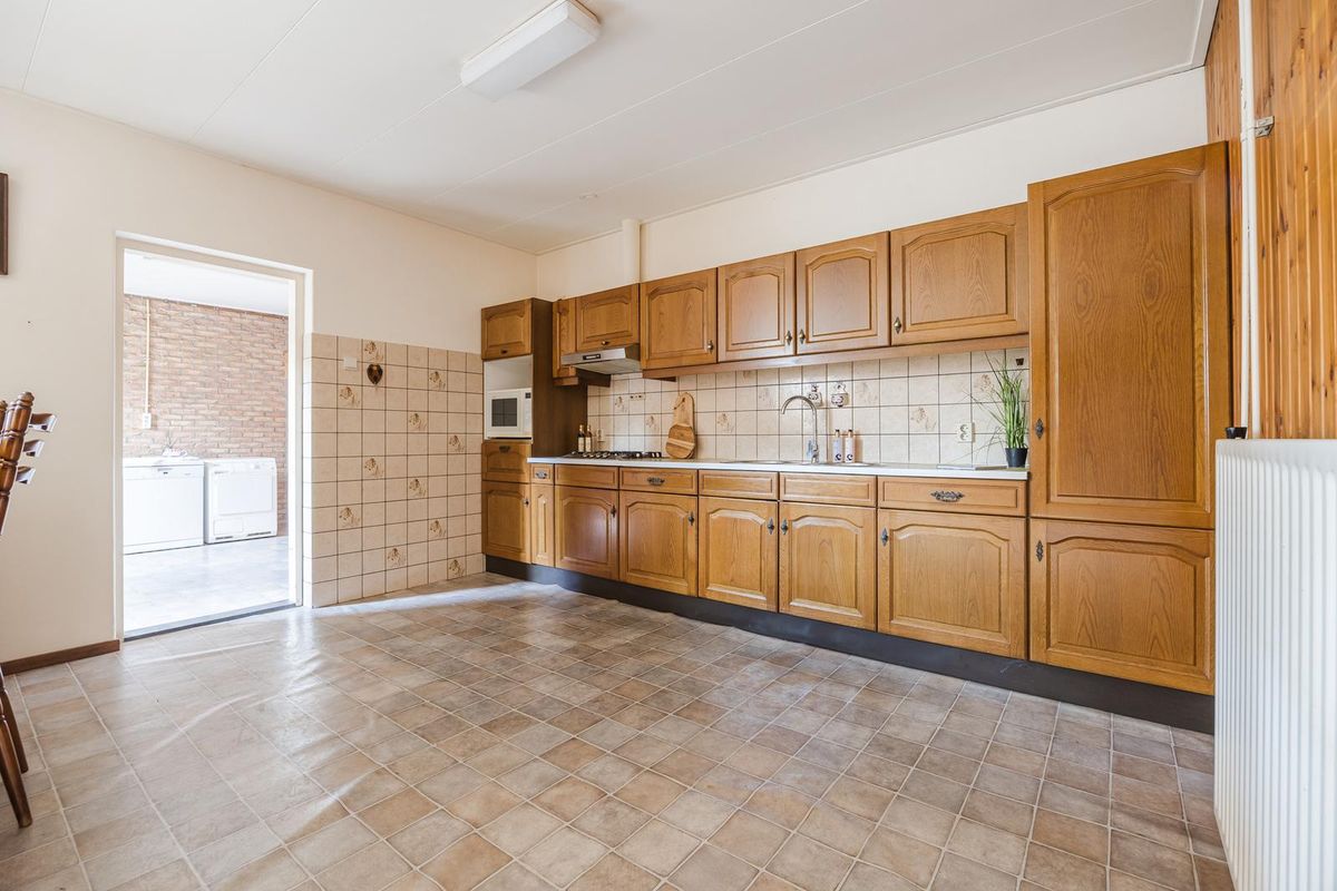 Er is een heerlijke leefkeuken met een vinylvloer, barretje en apparatuur. Vanuit de keuken heeft u zicht op de achtertuin en toegang tot de bijkeuken.