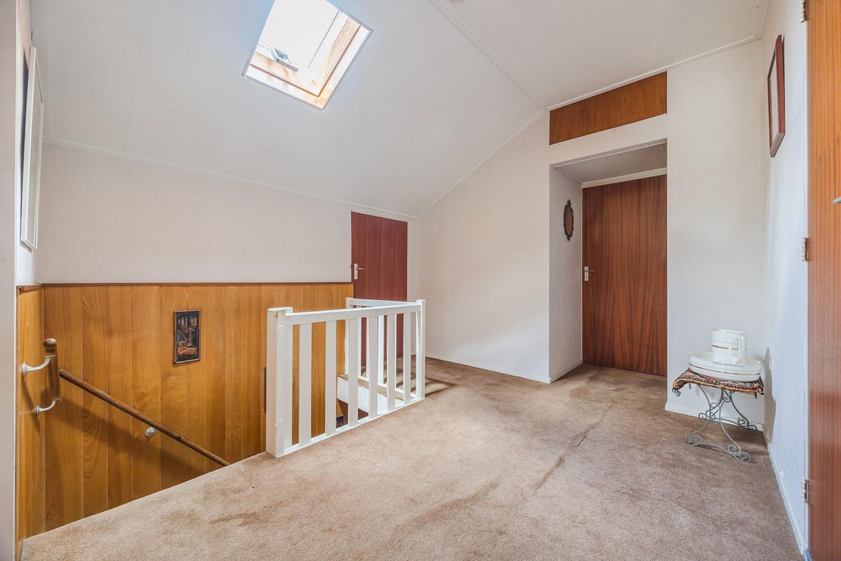 Op de 1e verdieping is een zeer ruime overloop met vloerbedekking, dakraam en ruime inbouwkast. Vanuit de overloop heeft u toegang tot de vier slaapkamers en de badkamer. Via de overloop heeft u tevens toegang tot de bergzolder.
