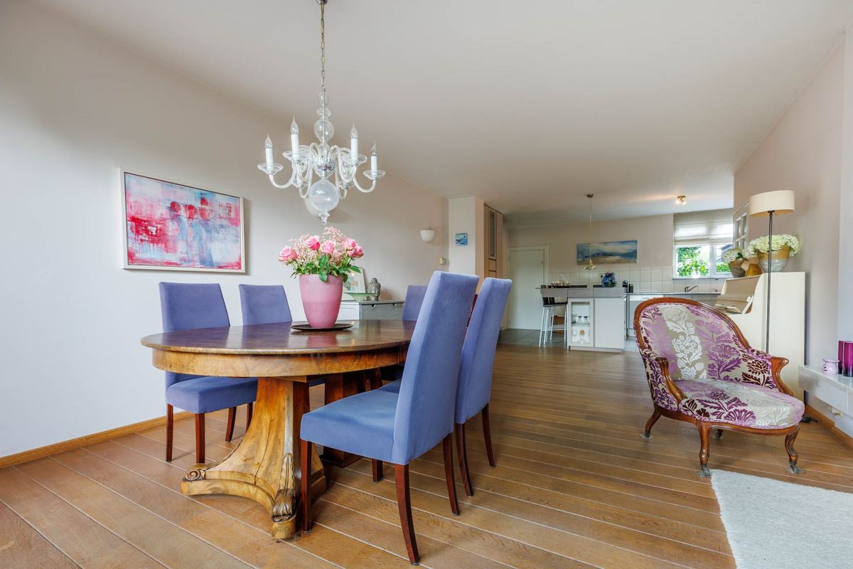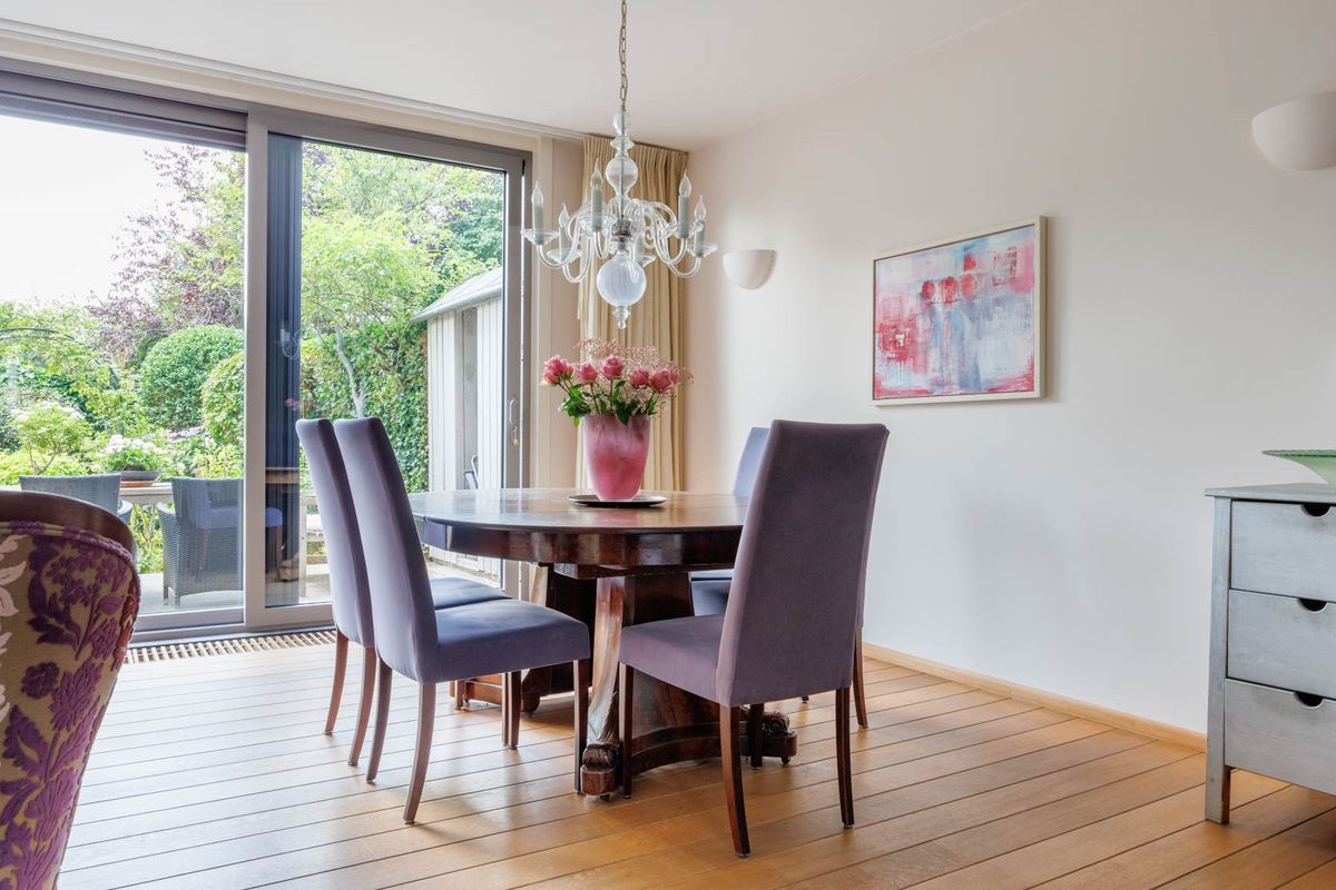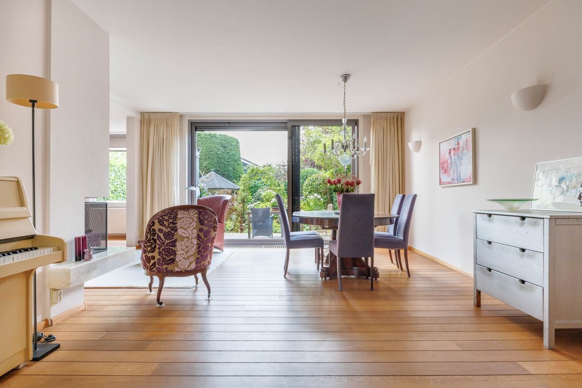 Via de fraai aangelegde voortuin bereik je de entree, ruime hal met garderobe en een toilet met fonteintje. Vanuit de hal kom je in de zeer royale en lichte L-vormige woonkamer met een sfeervolle open haard en een open keuken. De woonkamer heeft veel raampartijen wat voor veel licht zorgt en een gezellig extra zijgedeelte met, net als de woonkamer, uitzicht op de mooie tuin. Middels een schuifpui bereik je de royale fraai aangelegde achtertuin op het zuiden waar je de hele dag van de zon kunt genieten. Er is een gezellig prieeltje, zonwering en vaste kasten voor extra bergruimte.
