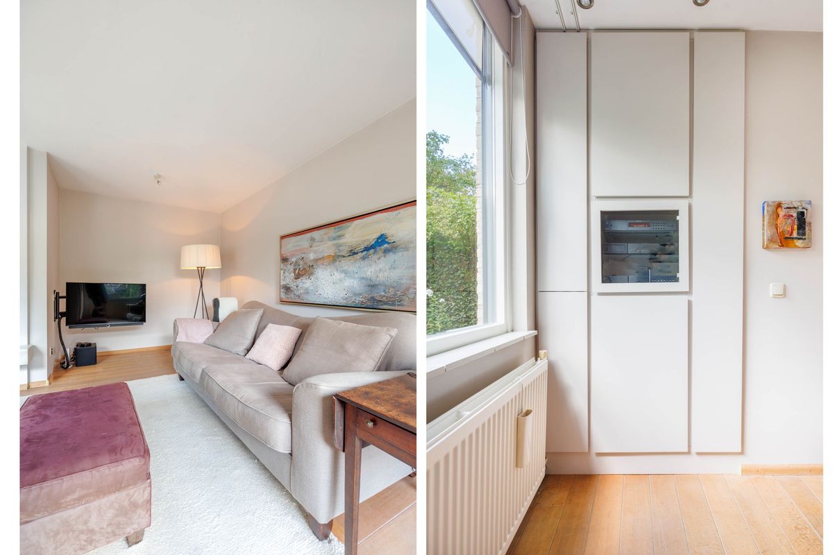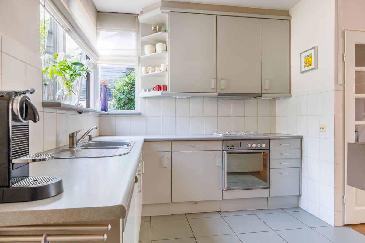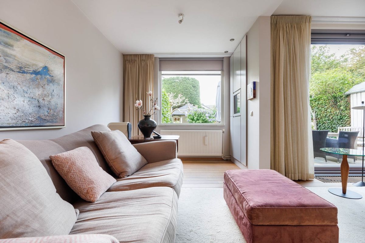 Via the beautifully landscaped front garden, you enter the hallway, which includes a coat area and a toilet with a small sink. From the hallway, you step into the spacious and bright L-shaped living room with a cozy open fireplace and an open-plan kitchen. The room has large windows, letting in plenty of natural light, and a charming side area that also overlooks the garden. Through the sliding doors, you access the generously sized and beautifully landscaped south-facing backyard, where you can enjoy the sun all day long. There is a cozy gazebo, a sunshade, and built-in storage cabinets for extra space.