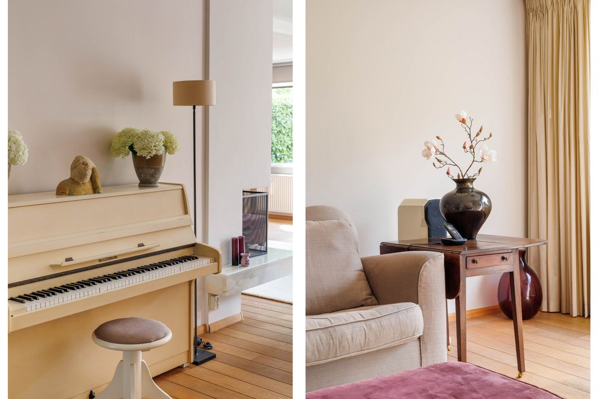 A spacious landing with plenty of daylight thanks to a side window. At the front of the house is a large bedroom with air conditioning and a walk-in closet. At the rear are two spacious and bright rooms that can be used as bedrooms or home offices; one of them also features a washbasin. The modern and luxurious bathroom (2021) is spacious and includes a rain shower, toilet, towel radiator, and double sink vanity with mirror, two floating cabinets, built-in lighting, and mechanical ventilation. The bathroom also houses the washing machine and dryer.