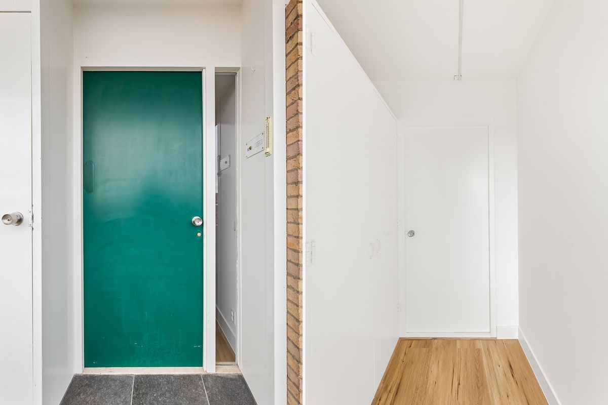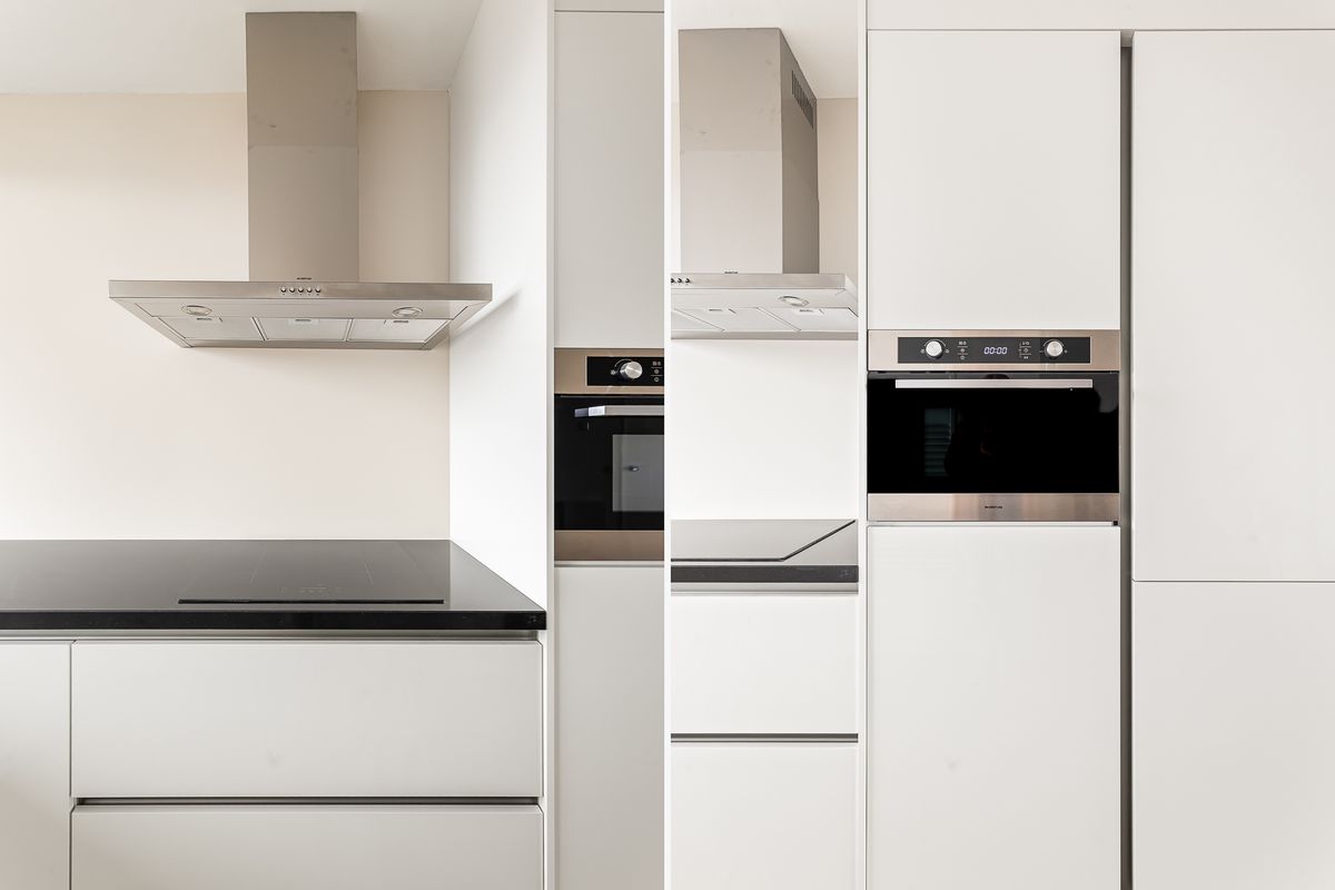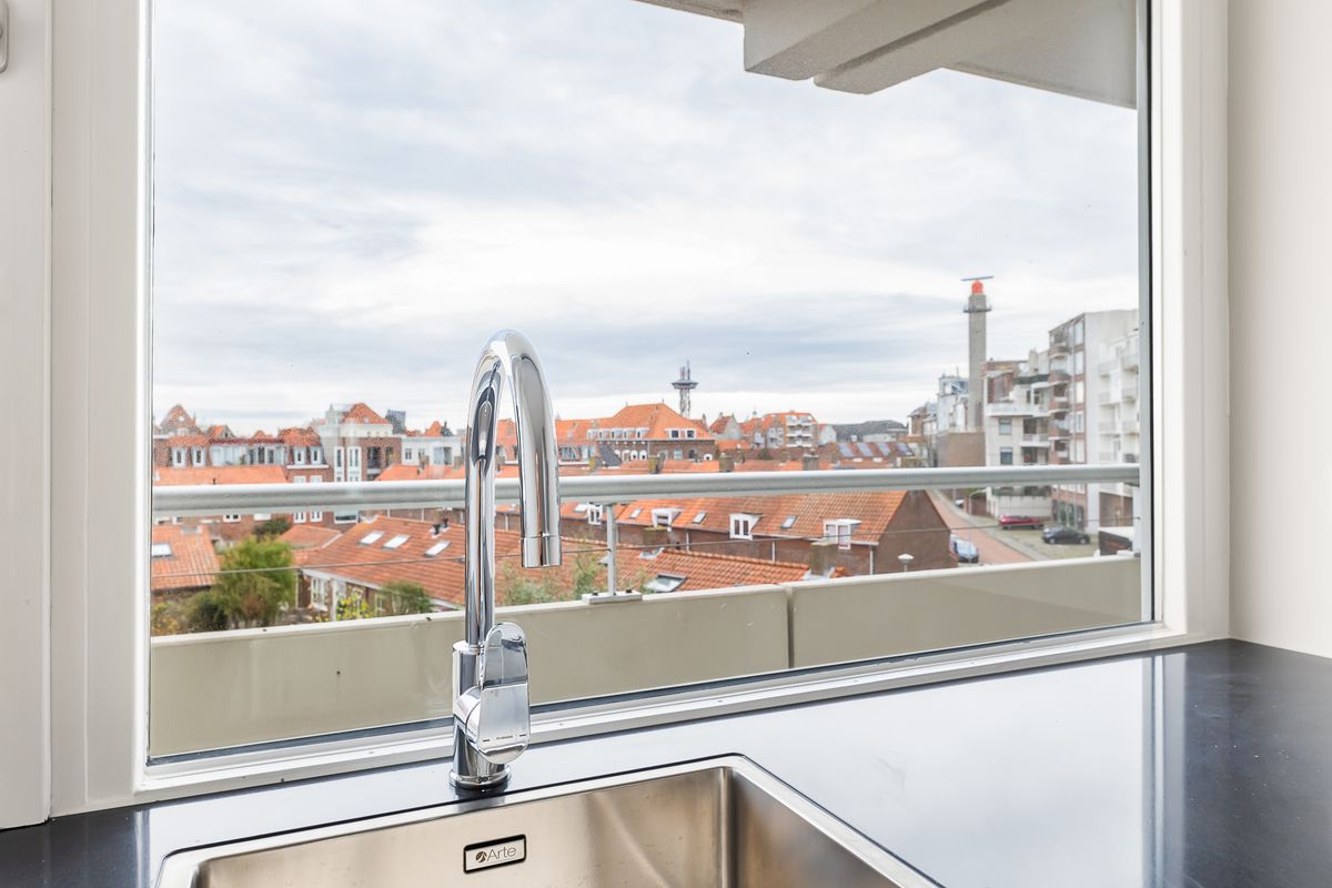 Entree van het appartement, hal met de kast met opstelling van de c.v.-combiketel. Dit appartement is voorzien van een royale woonkamer. Het magnifieke uitzicht vanuit de woonkamer reikt tot aan de Zeeuws Vlaamse kust. Er is een prettig overdekt balkon over de hele breedte van het appartement. De open keuken is luxe uitgevoerd en voorzien van inbouwapparatuur. De tweede hal biedt ruimte aan een slaap- of werkkamer aan de koele achterzijde en het vernieuwde toilet.