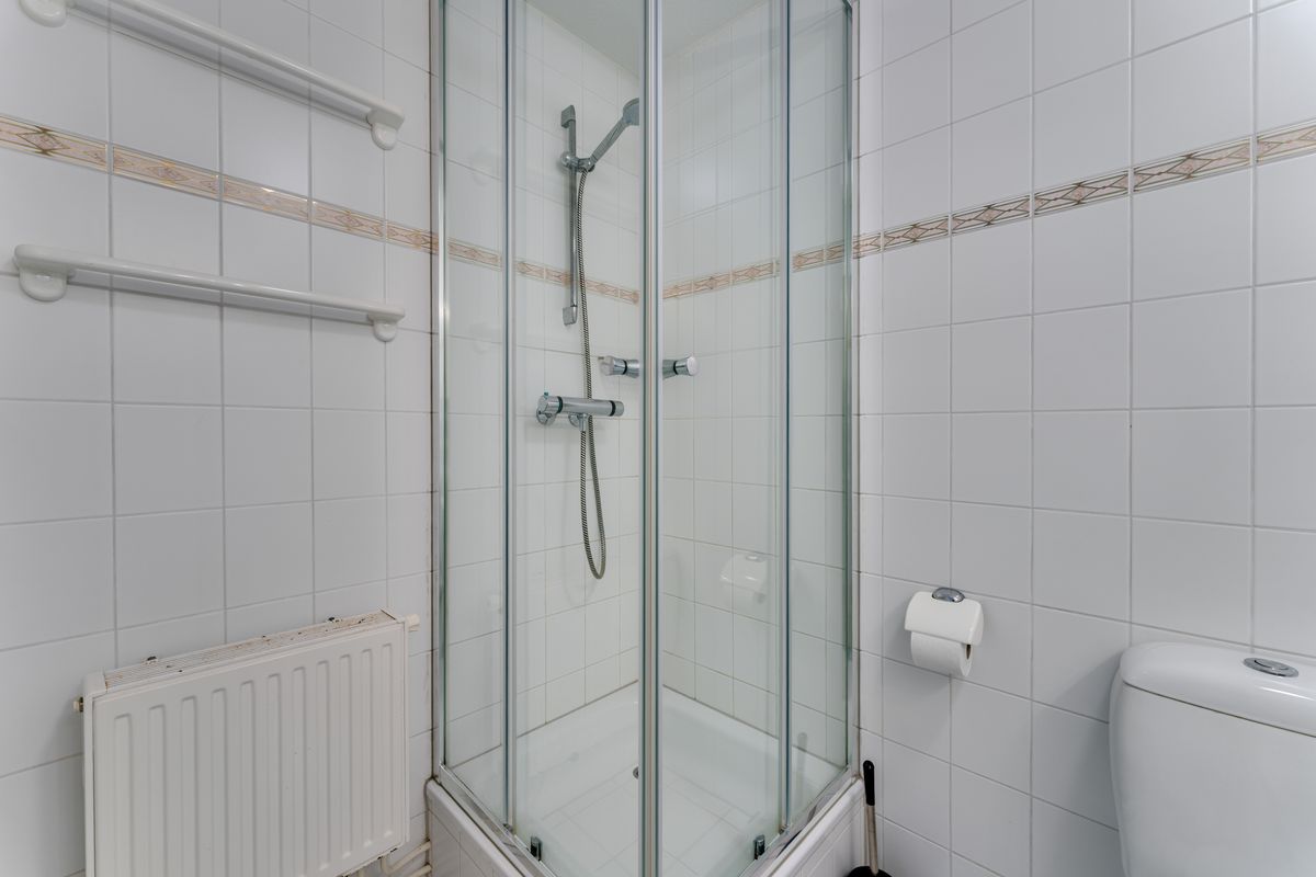 De slaapkamer bevindt zich aan de rustige achterzijde van de woning en is ruim genoeg voor een tweepersoonsbed en kastruimte. De badkamer is compact maar praktisch en voorzien van een douche, wastafel en toilet. Daarnaast is er een inpandige berging met cv-installatie en ruimte voor opslag. Op de begane grond beschikt het appartement bovendien over een externe berging en een privé parkeerplaats – luxe en comfort dat je aan de kust niet vaak tegenkomt.