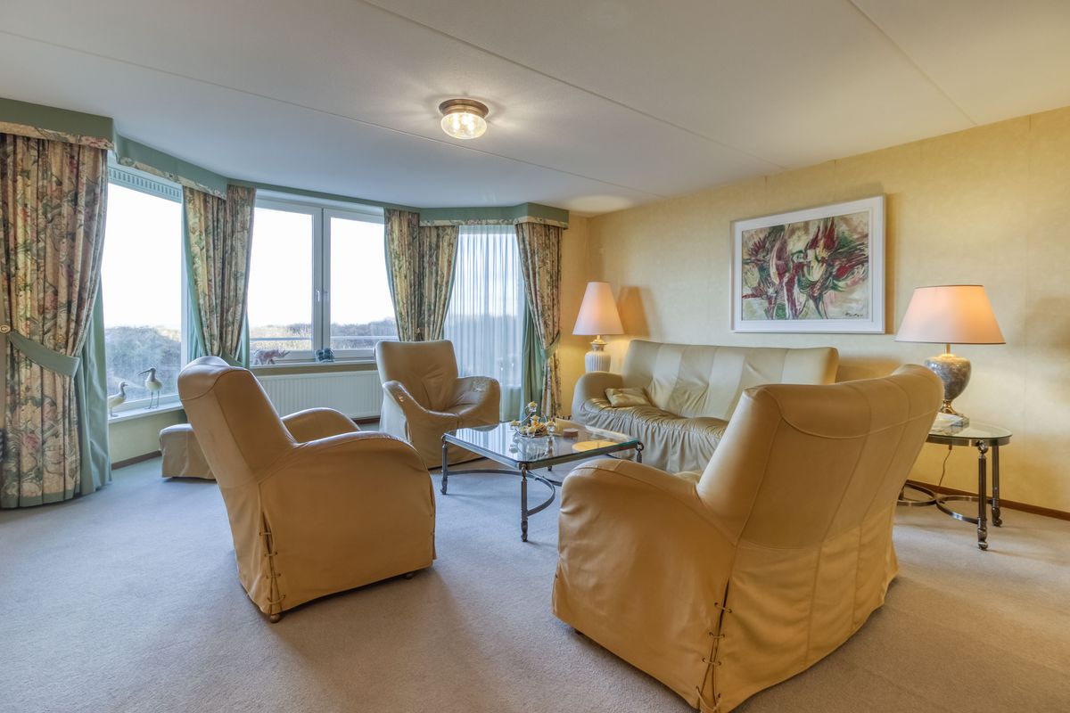 Zodra u de woonkamer binnenstapt, opent zich een breed en vrij uitzicht over het golvende duingebied met daarachter de Noordzee. De grote raampartijen halen het buitengevoel naar binnen en creëren een serene, ontspannen sfeer waarin licht, lucht en ruimte centraal staan. Aan de zuidzijde kijkt u uit over de charmante Boulevard met haar winkels, terrassen en warme kustarchitectuur. Deze unieke combinatie van natuur en gezelligheid zorgt voor een woonbeleving die zowel comfortabel als inspirerend is.