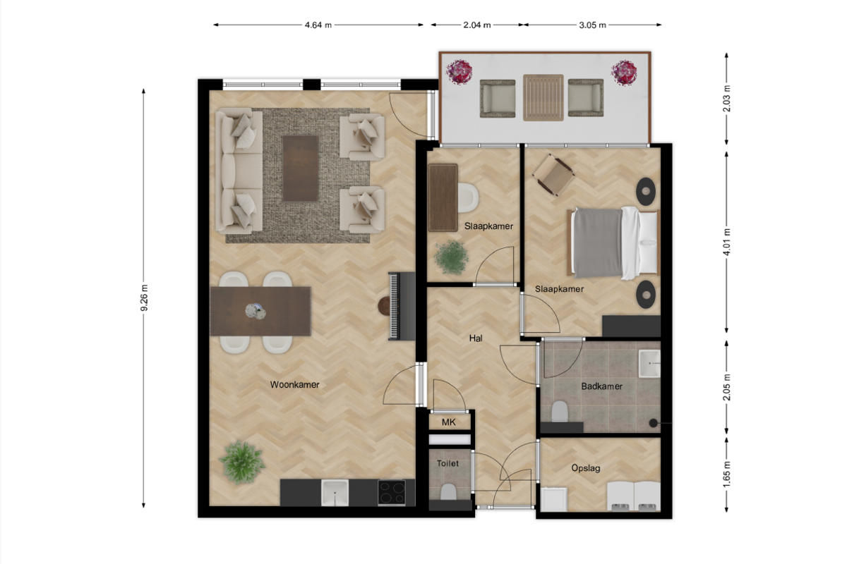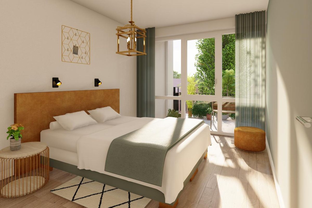 Woningtype F is een ruim appartement met circa 83m2 woonoppervlakte. Het appartement beschikt over een ruime woonkamer met open keuken met inbouwapparatuur (waarbij een eigen indeling mogelijk is). Daarnaast beschikt dit appartement over twee slaapkamers. Als u het appartement binnenkomt, vindt u aan uw rechterhand de berging met daarin o.a. de technische installaties. Aan de berging grenst de badkamer met wastafel, toilet en douche. De badkamer is via twee toegangsdeuren bereikbaar, zodat u deze ook direct vanuit de hoofdslaapkamer kunt betreden. Links van de hoofdslaapkamer vindt u de tweede slaapkamer. U kunt deze tweede slaapkamer bijvoorbeeld gebruiken voor logees, kantoor of extra bergruimte. Bij binnenkomst in het appartement vindt u aan de linkerzijde een separaat toilet en de meterkast. Als u verder doorloopt vindt u de woonkamer en keuken. Via de ruimte woonkamer heeft u toegang tot het ruime balkon. Van woningtype F zijn drie koopappartementen aanwezig.