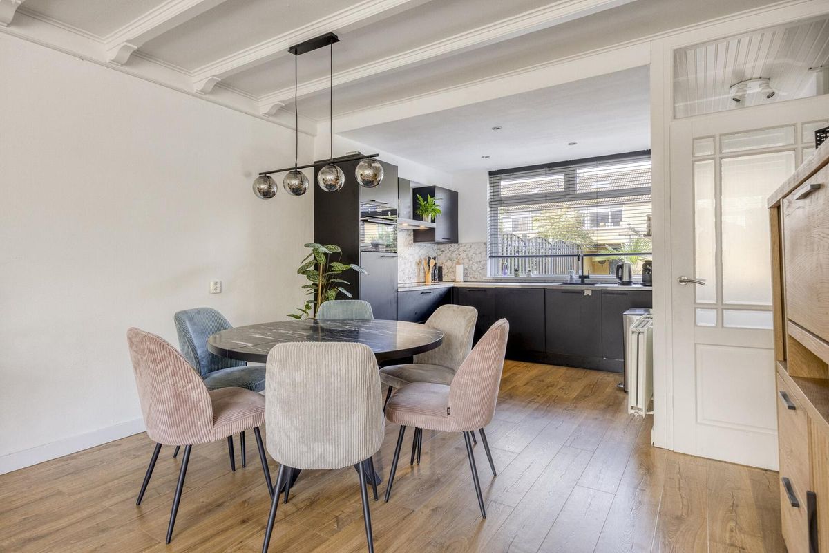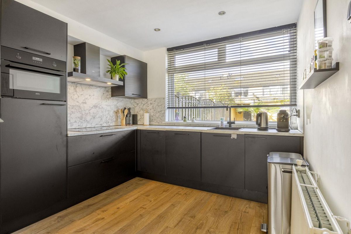 De woonkamer is modern ingericht en straalt een fijne, rustige sfeer uit. Dankzij de grote raampartijen valt het daglicht prachtig naar binnen, wat zorgt voor een lichte en open uitstraling. Er is meer dan genoeg plek voor een royale zithoek om te relaxen, én een gezellige eethoek waar je met vrienden of familie uitgebreid kunt tafelen. De open keuken is een echte eyecatcher: strak vormgegeven met matzwarte kastjes, luxe inbouwapparatuur en stijlvolle wandtegels die perfect passen bij het moderne geheel. Doordat de keuken in open verbinding staat met de woonkamer, blijf je altijd in contact met je gasten of gezinsleden. Koken, kletsen en genieten gaan hier moeiteloos samen!