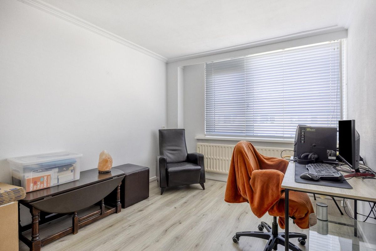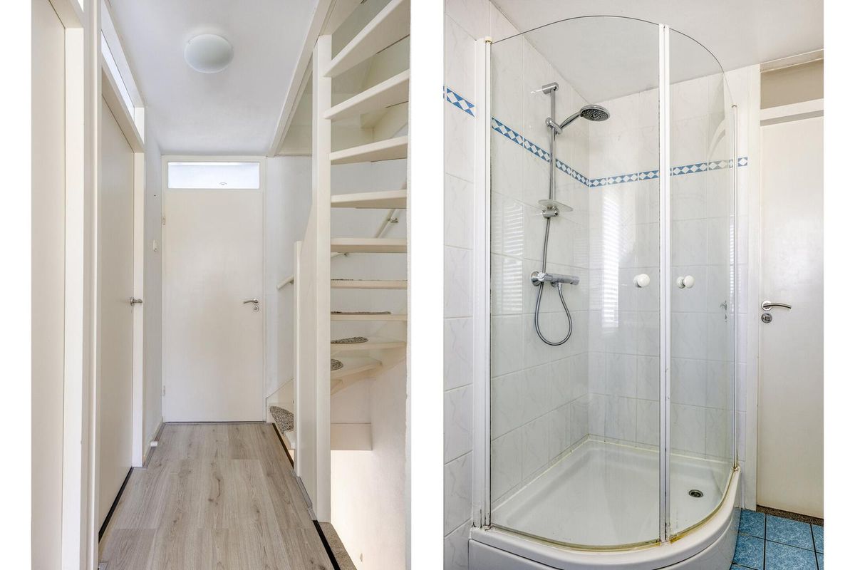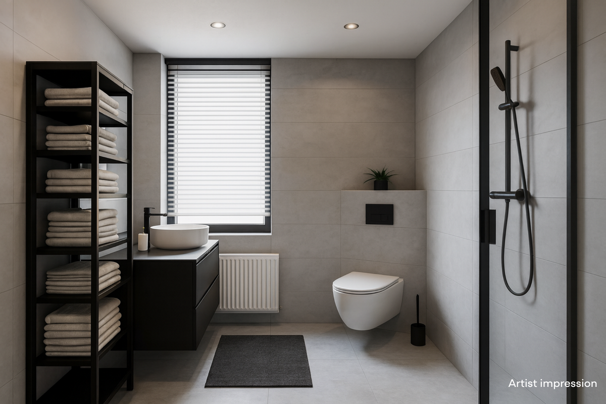 Op de eerste verdieping bevinden zich drie slaapkamers van verschillende formaten. De kamers zijn netjes afgewerkt, licht en praktisch in te delen. Of je nu een kinderkamer, thuiskantoor, hobbyruimte of inloopkast nodig hebt, de mogelijkheden zijn eindeloos. De tweede verdieping verrast met een royale vierde slaapkamer, perfect als ouderslaapkamer of juist als rustige werk- of studeerkamer, weg van de drukte beneden. De badkamer is fris en functioneel ingericht, voorzien van een douche, een wastafelmeubel en een toilet. De witte wandtegels zorgen voor een tijdloze en verzorgde uitstraling, waardoor de ruimte altijd fris aanvoelt. Een fijne plek om je dag rustig te starten of ontspannen af te sluiten.