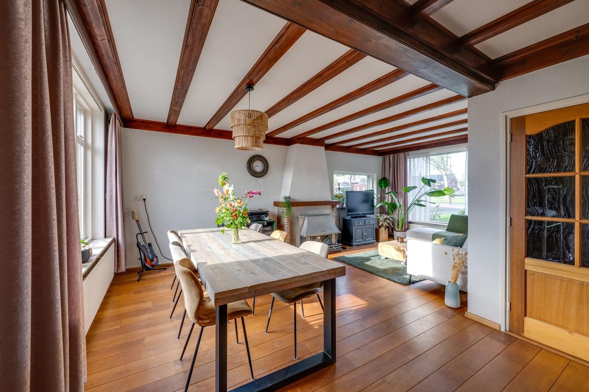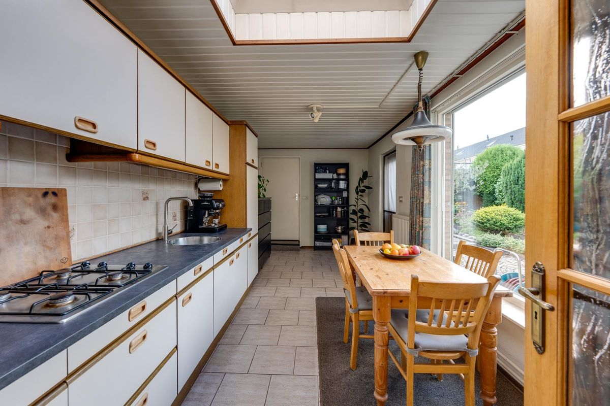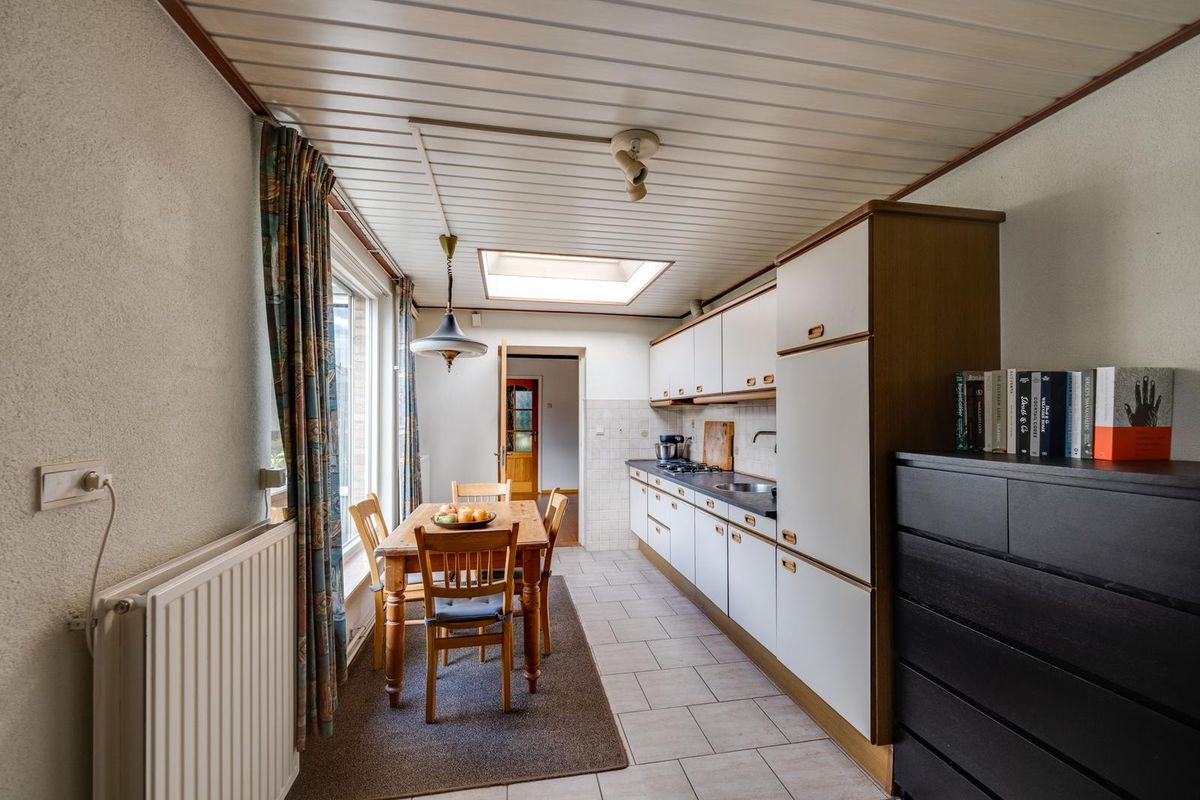 Vanuit de hal, met meterkast, toilet en trapopgang met trapkast, bereik je de L-vormige woonkamer. Door de grote raampartijen komt er plezierig veel licht binnen. De aangebouwde keuken, met een oppervlakte van circa 16 m² is voorzien van een rechte keukeninrichting, maar biedt volop mogelijkheden! Vanuit de keuken is de garage toegankelijk. Hier bevinden zich tevens de aansluitingen voor de wasapparatuur.