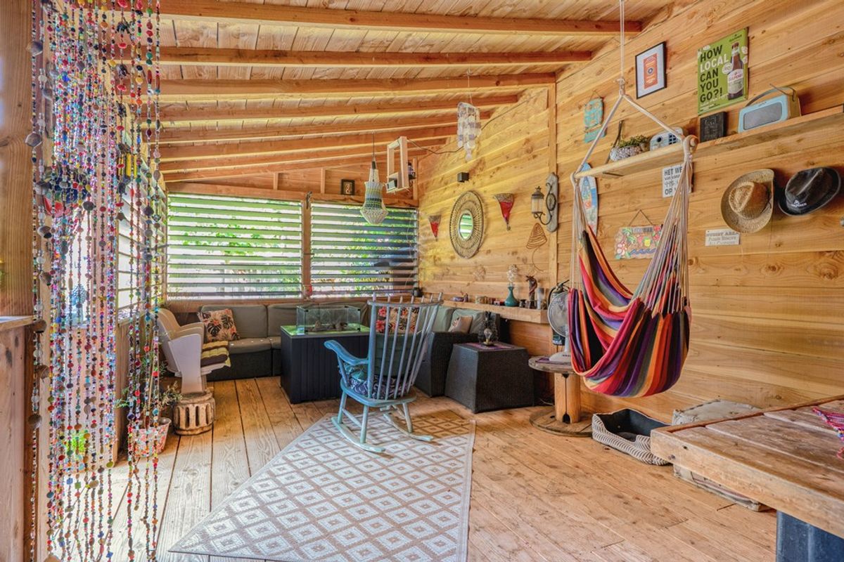 De woning beschikt over een royale tuin rondom. Aan de achterzijde ligt een besloten privé-tuin met eigen poort en korte oprit. Blikvanger is de sfeervolle kapschuur met shutters, verlichting en een keukenblok met wateraansluiting. Vanuit hier zijn een berging (met voorbereidingen voor sauna) en de groentetuin bereikbaar.