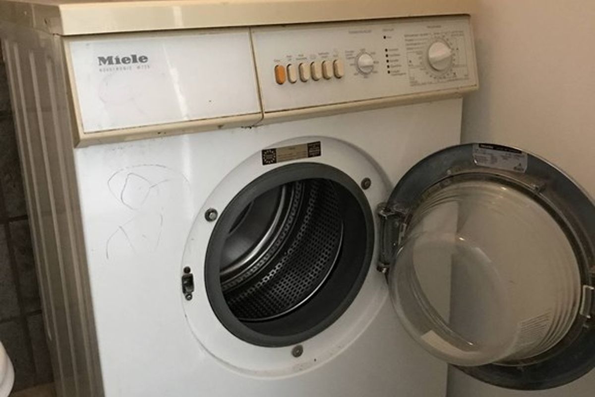 The toilet is located outside the studio in a room shared with the washing machine (in the communal entrance/hallway).
