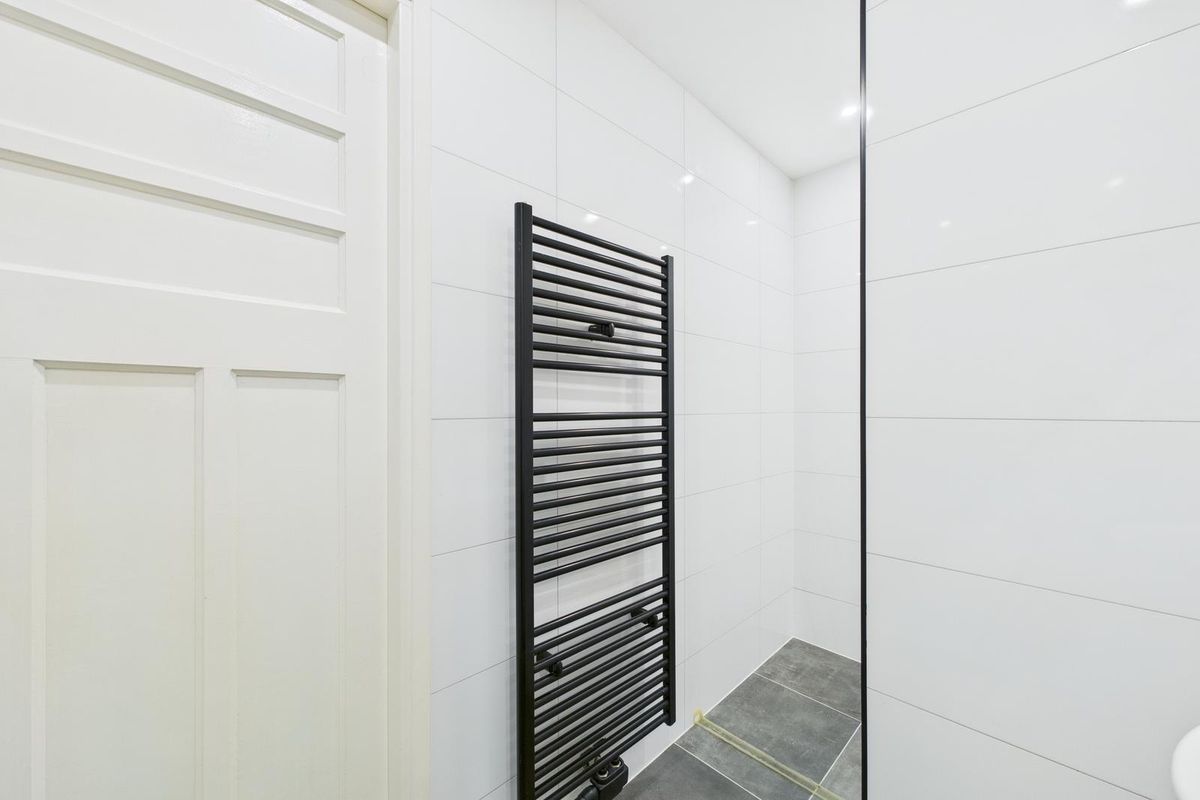 Je komt binnen via de gezamenlijke entree met meterkast en verzorgde trapopgang waarvan de muren recent gerenoveerd zijn. De hal in het appartement geeft toegang tot alle vertrekken. Aan de voorzijde ligt de lichte woonkamer met open keuken, voorzien van combimagnetron, afzuigkap, 4-pits gasfornuis, koelkast en vaatwasser. De badkamer beschikt over een inloopdouche, wastafel en designradiator, met plek voor wasmachine en/of droger. Achterin liggen twee ruime slaapkamers, waarvan één toegang geeft tot een zonnig dakterras. Verder beschikt het appartement over een volledig betegeld modern toilet.