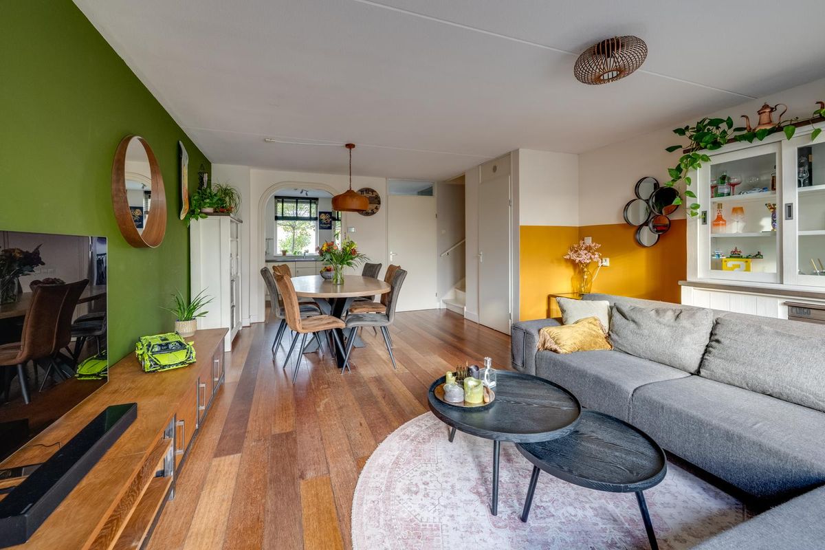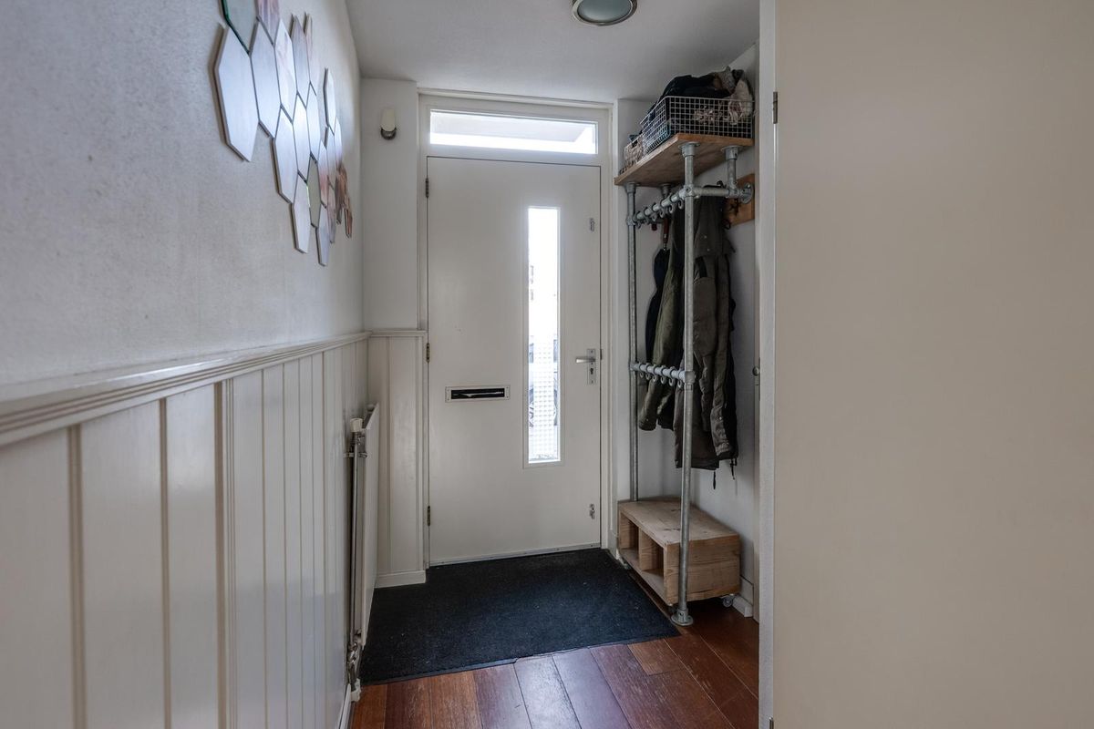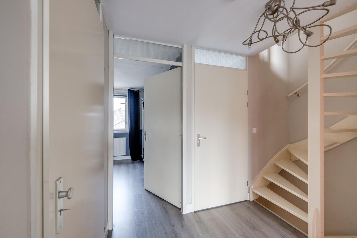 Je stapt binnen in de hal, waar zich de meterkast en het toilet bevinden. Vanuit hier loop je door naar de woonkamer: een gezellige, tuingerichte leefruimte. Via de loopdeur sta je direct in de fijne achtertuin. In de woonkamer vind je ook extra opbergruimte in de trapkast en toegang tot het afgesloten trapportaal richting de eerste verdieping.