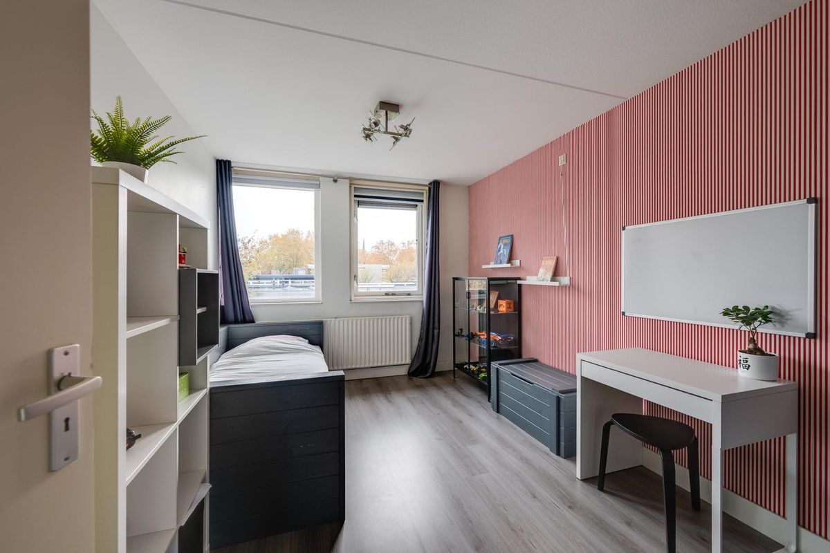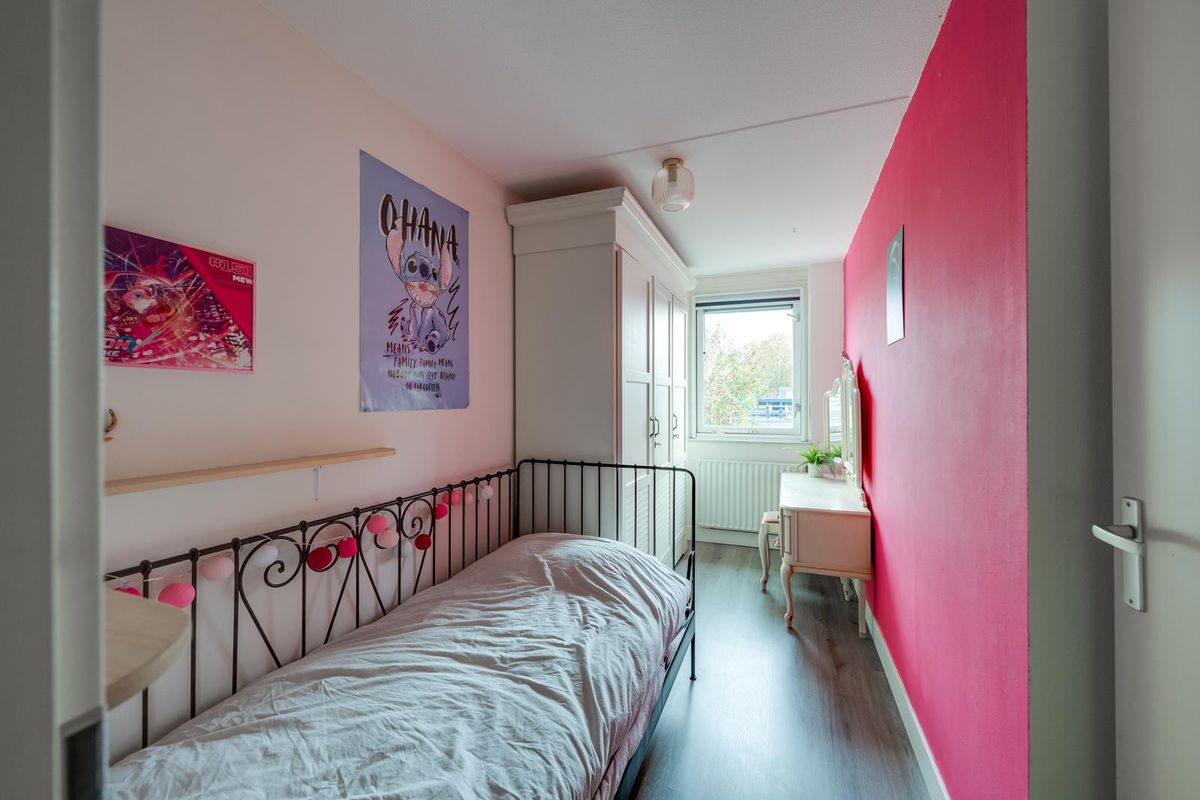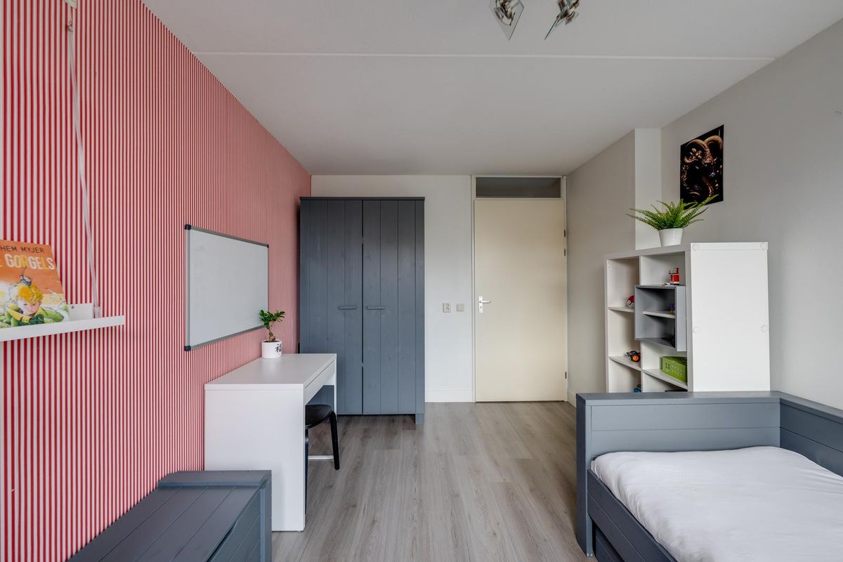 Dankzij de opbouw die in 2013 is geplaatst, is er op deze verdieping volop ruimte ontstaan. Hier bevinden zich twee slaapkamers. Leuk detail: vanuit de slaapkamer aan de achterzijde geniet je van een prachtig uitzicht op korenmolen De Lelie - een authentiek element dat deze woonwijk nét dat beetje extra karakter geeft.