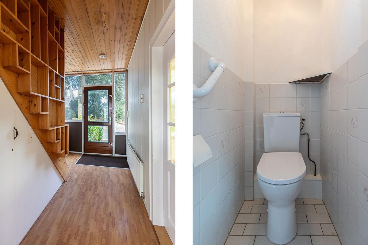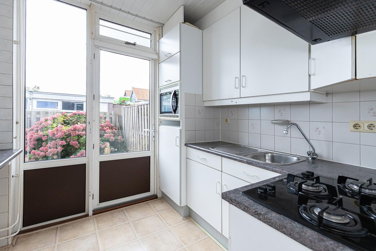 Bij binnenkomst vind je in de hal toegang tot de woonkamer, de keuken, het toilet, de meterkast en de trapopgang met handige trapkast. De woonkamer is heerlijk licht en ruim, ideaal om een sfeervolle leefruimte te creëren. De aangrenzende keuken is praktisch ingericht en voorzien van een gaskookplaat, afzuigkap, combimagnetron en koelkast. Een bijzonder detail is de doorkijk van de keuken naar de woonkamer waardoor beide ruimtes op een speelse manier met elkaar verbonden zijn. Door het verwijderen van deze tussenwand ontstaat een heerlijke leefruimte waar koken, eten en samen genieten samenkomen.