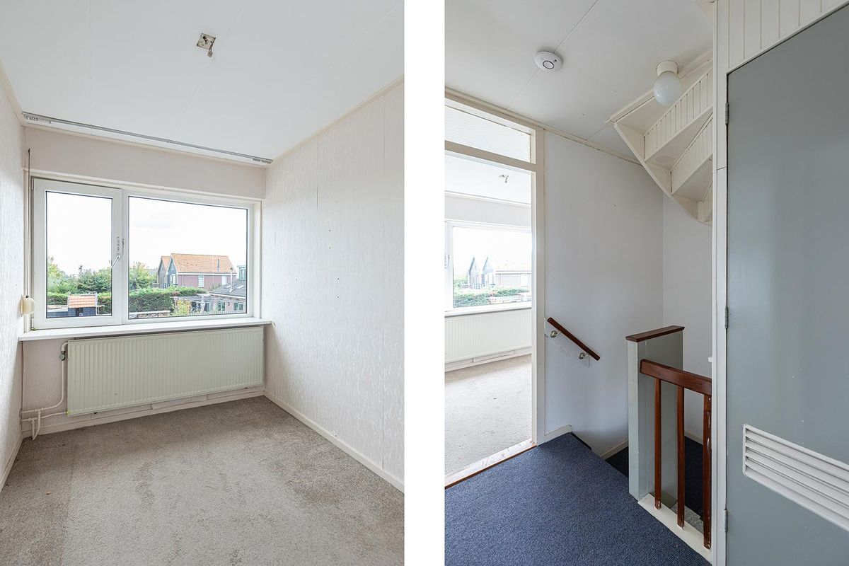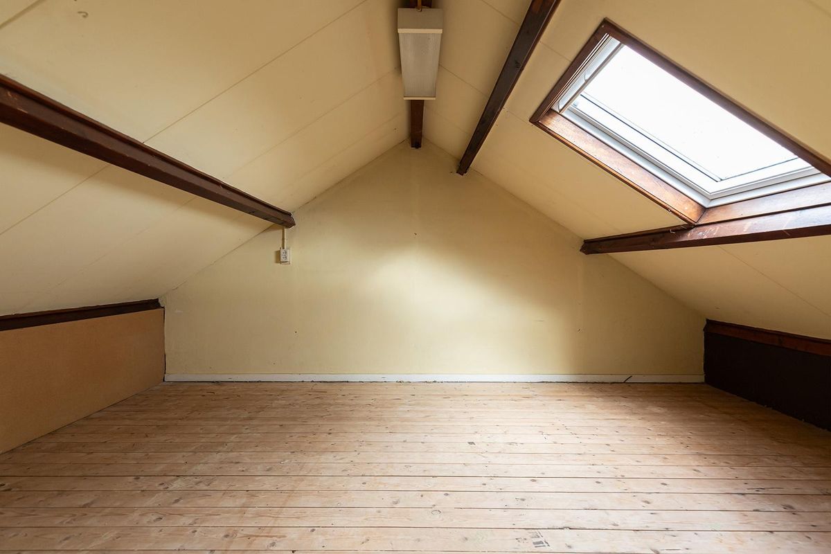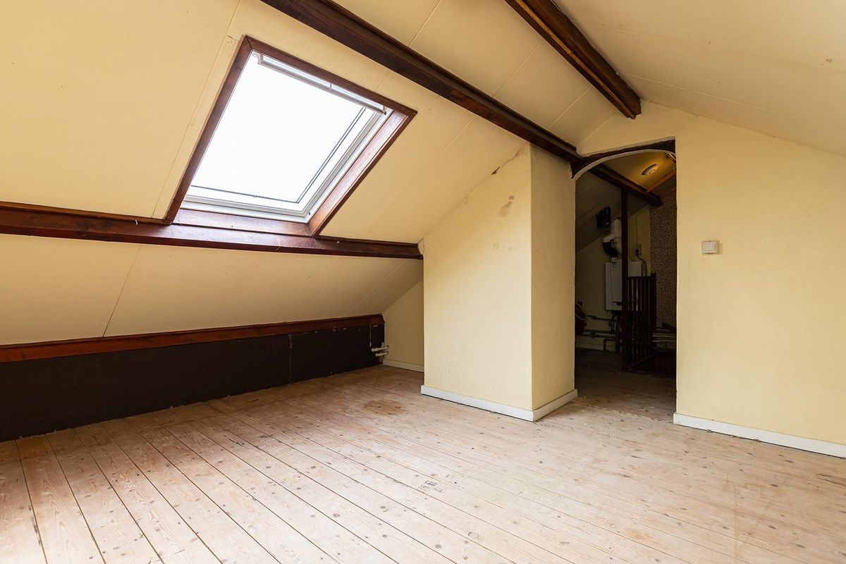 De eerste verdieping is ingedeeld met drie slaapkamers en een eenvoudige badkamer, die is voorzien van een zitbad, wastafel en de aansluiting voor de wasmachine. Op de tweede verdieping (bereikbaar via een vaste trap) is een royale zolderkamer, waar het dakraam zorgt voor natuurlijk licht. Hier kun je eenvoudig een extra slaapkamer of werkkamer realiseren. Op de voorzolder bevindt zich de CV-combiketel.