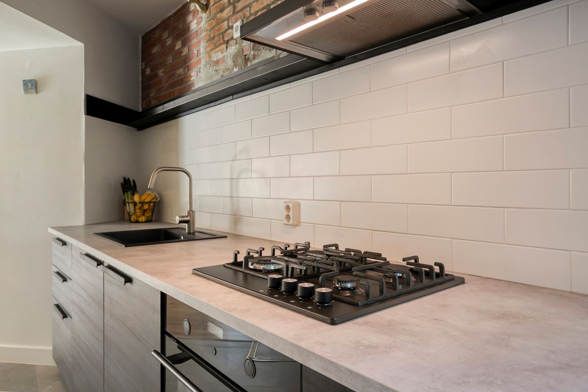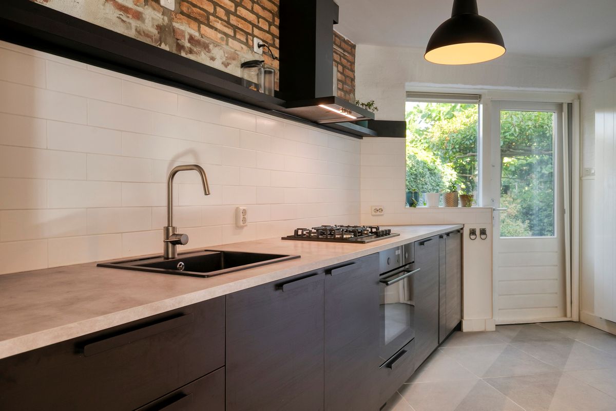 • Keuken: in de keuken een mooi, modern en eigentijds keukenblok (ca. 2018) met kunststof werkblad en geïntegreerde apparatuur zoals: 4-pits gaskookplaat met afzuigkap, oven, vaatwasser en een koelkast. In de keuken de deur naar de achtertuin. De wanden zijn deels betegeld en de vloer is afgewerkt met een keramische tegel.