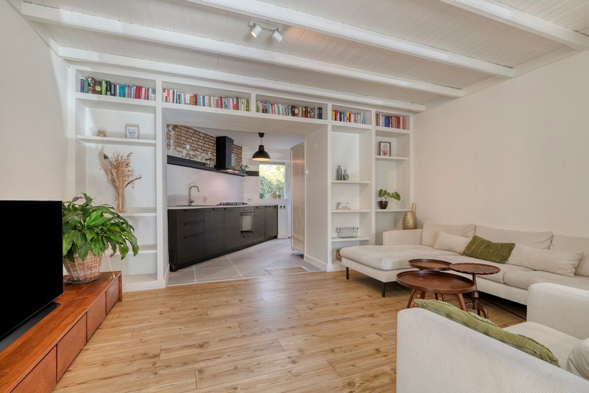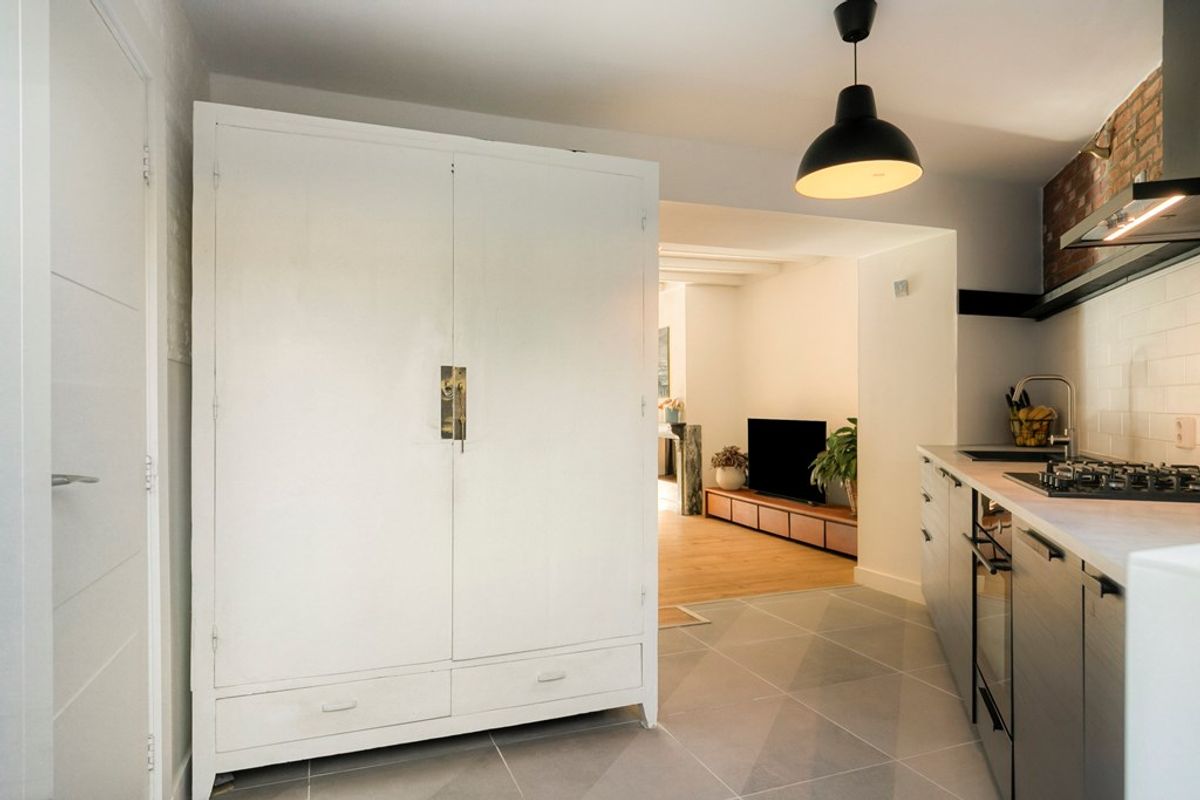 • Keuken: in de keuken een mooi, modern en eigentijds keukenblok (ca. 2018) met kunststof werkblad en geïntegreerde apparatuur zoals: 4-pits gaskookplaat met afzuigkap, oven, vaatwasser en een koelkast. In de keuken de deur naar de achtertuin. De wanden zijn deels betegeld en de vloer is afgewerkt met een keramische tegel.