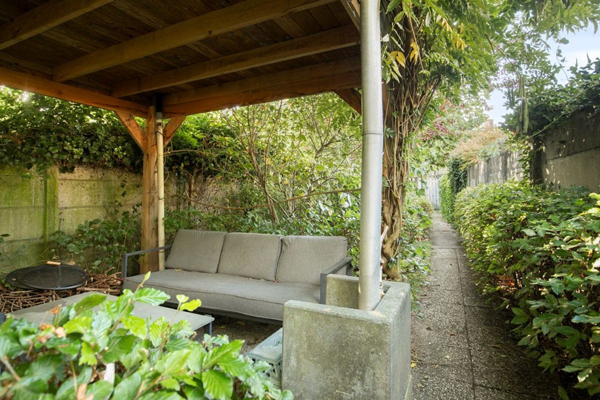 • De zeer diepe achtertuin is groen van opzet met veel planten, struiken, (lei)bomen en hagen. Hier zou je niet zeggen dat je midden in het centrum woont, met zoveel tuin en groen. Halverwege in de tuin nog een overkapping en een stenen berging (halfsteens uitgevoerd).