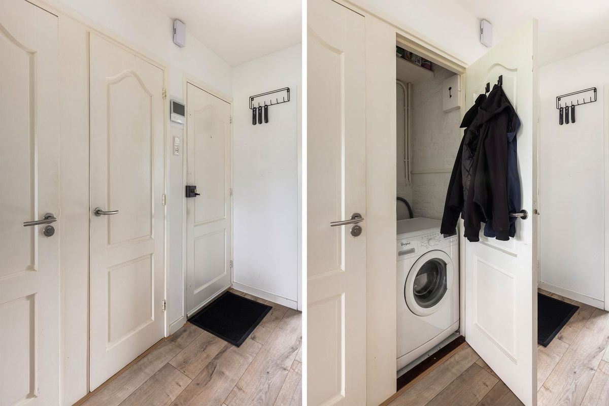 De badkamer is geheel betegeld en uitgerust met een douchecabine en een wastafelmeubel. Ook beschikt het appartement over een eigen grote berging in de onderbouw.