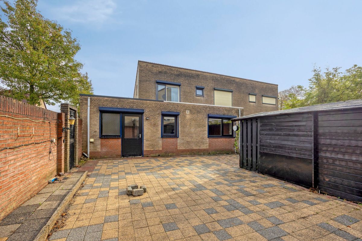 De tuin ligt gunstig op het westen, waardoor je hier volop van de middag- en avondzon geniet. Dankzij de besloten ligging heb je veel privacy. Er is een ruim terras, een houten berging en een handige poort in de stenen erfafscheiding aan de zijkant. De woning ligt aan een rustig hofje in een geliefde woonwijk. Aan de rand van de wijk loopt een wandelpad, ideaal voor een frisse wandeling of om even de hond uit te laten.