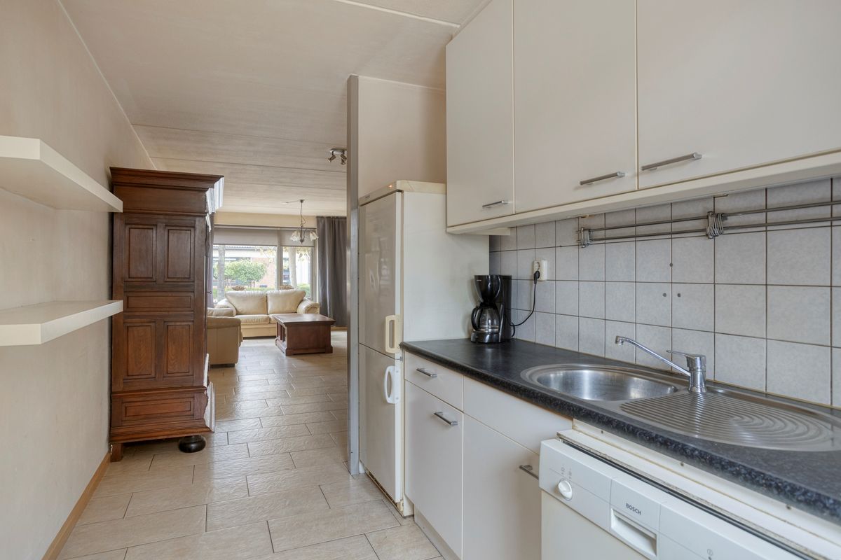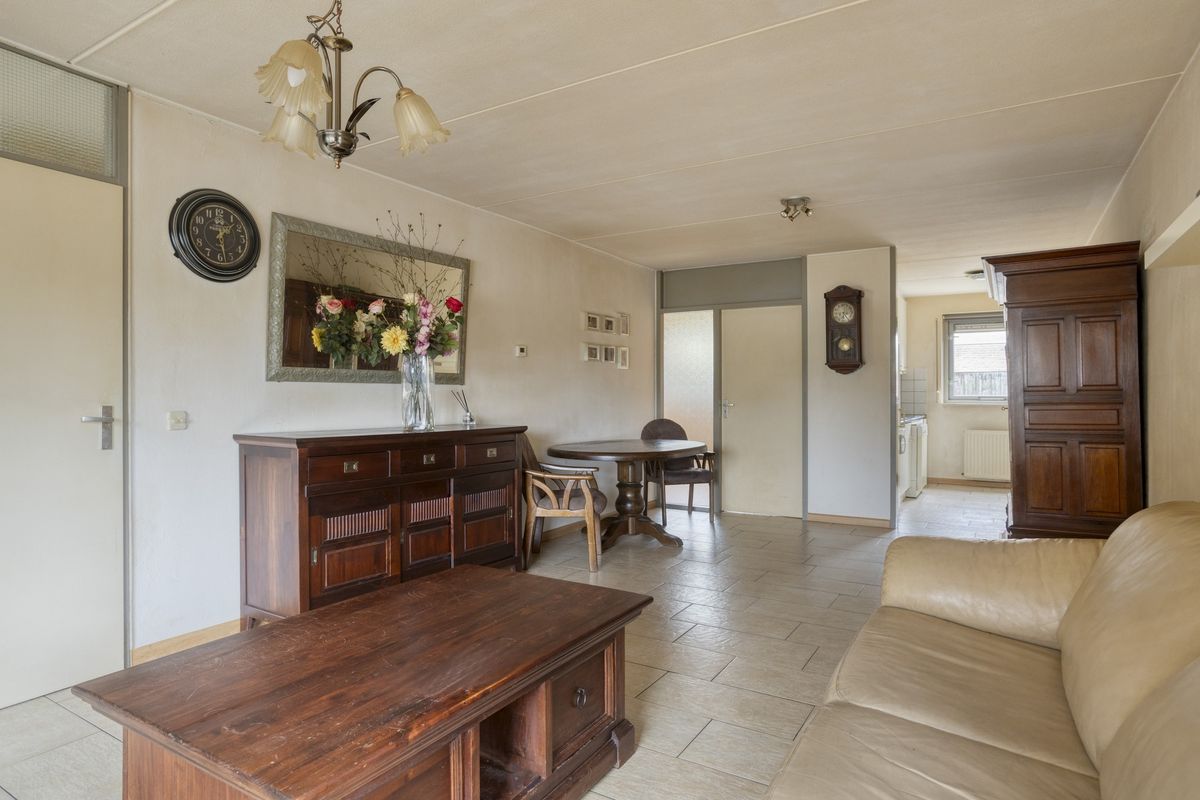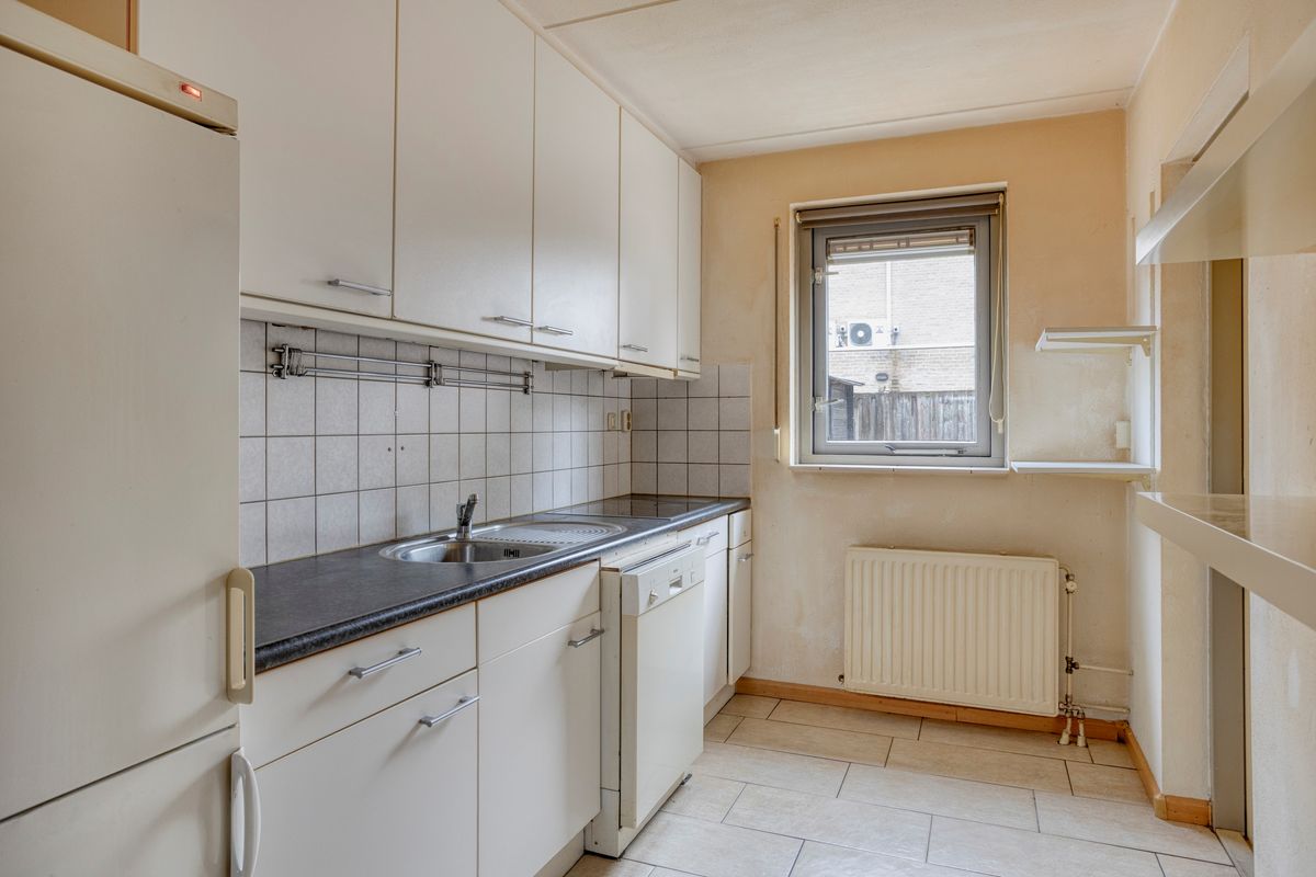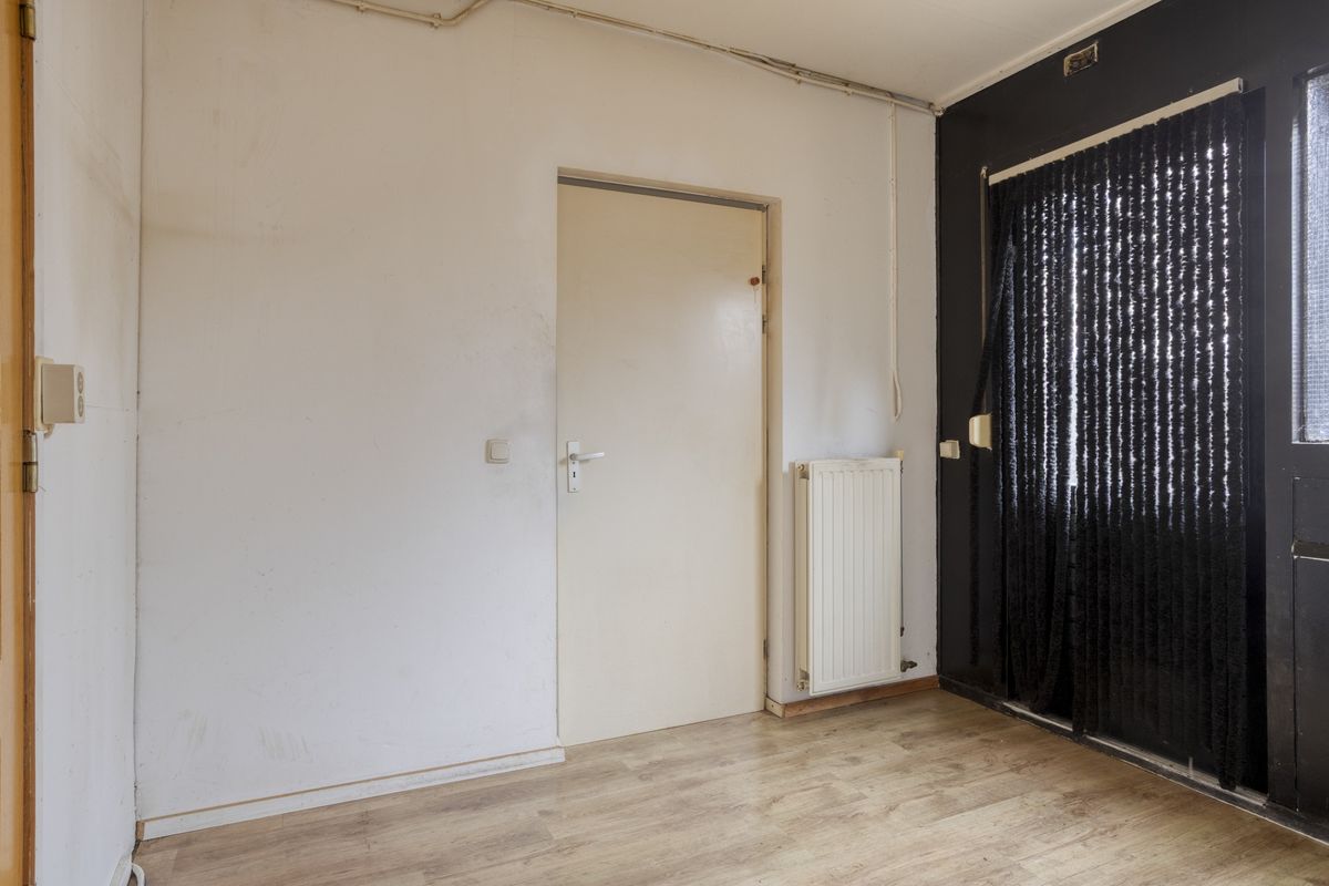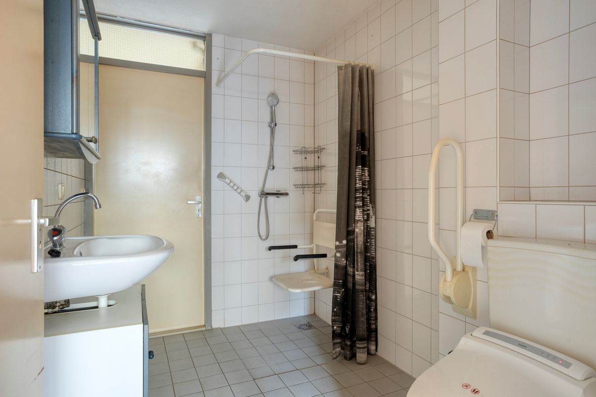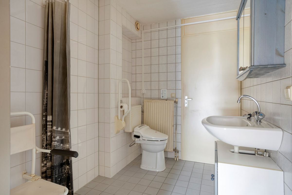 Je komt binnen in de hal met meterkast, trapopgang en praktische trapkast. Aan de voorzijde bevindt zich de gezellige woonkamer, waar het zitgedeelte uitkijkt over het rustige hofje. Het eetgedeelte sluit mooi aan bij de open keuken, die is voorzien van een eenvoudige keukenopstelling. Aangrenzend vind je de bijkeuken met witgoedaansluitingen, ideaal voor extra bergruimte of het plaatsen van apparatuur. Via de bijkeuken heb je toegang tot de inpandige berging, deze ruimtes zijn ontstaan door het opdelen van de oorspronkelijk garage. De slaapkamer op de begane grond is ruim en licht en heeft direct toegang tot de badkamer met douche, wastafel en toilet. Deze badkamer is daarnaast ook via de hal bereikbaar.