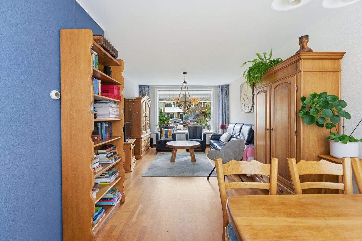 Woonkamer: De woonkamer is een fijne doorzonkamer en genoeg ruimte voor een gezellige zithoek en eethoek. Aan de achterzijde bevindt zich een kunststof pui. De voorzijde heeft een uitdragende vensterbank, die zich perfect leent voor een paar mooie planten of accessoires. De kamer biedt zicht op de diepe voortuin en de parkeerhof voor de woning. De ruimte is afgewerkt met parketvloer, spachtelputzwanden en een gestuukt plafond.