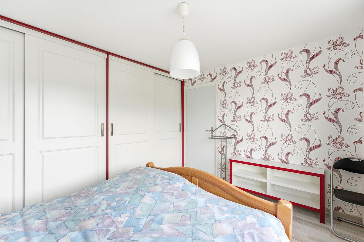 Slaapkamer 1: Deze ruime slaapkamer aan de voorzijde beschikt over een ruime inbouwkast en is voorzien van een rolluik. Je hebt voldoende plek voor een tweepersoonsbed en je bergt je kleding overzichtelijk op in de praktische kast. De ruimte is afgewerkt met laminaatvloer, behangwanden en een gestuukt plafond.