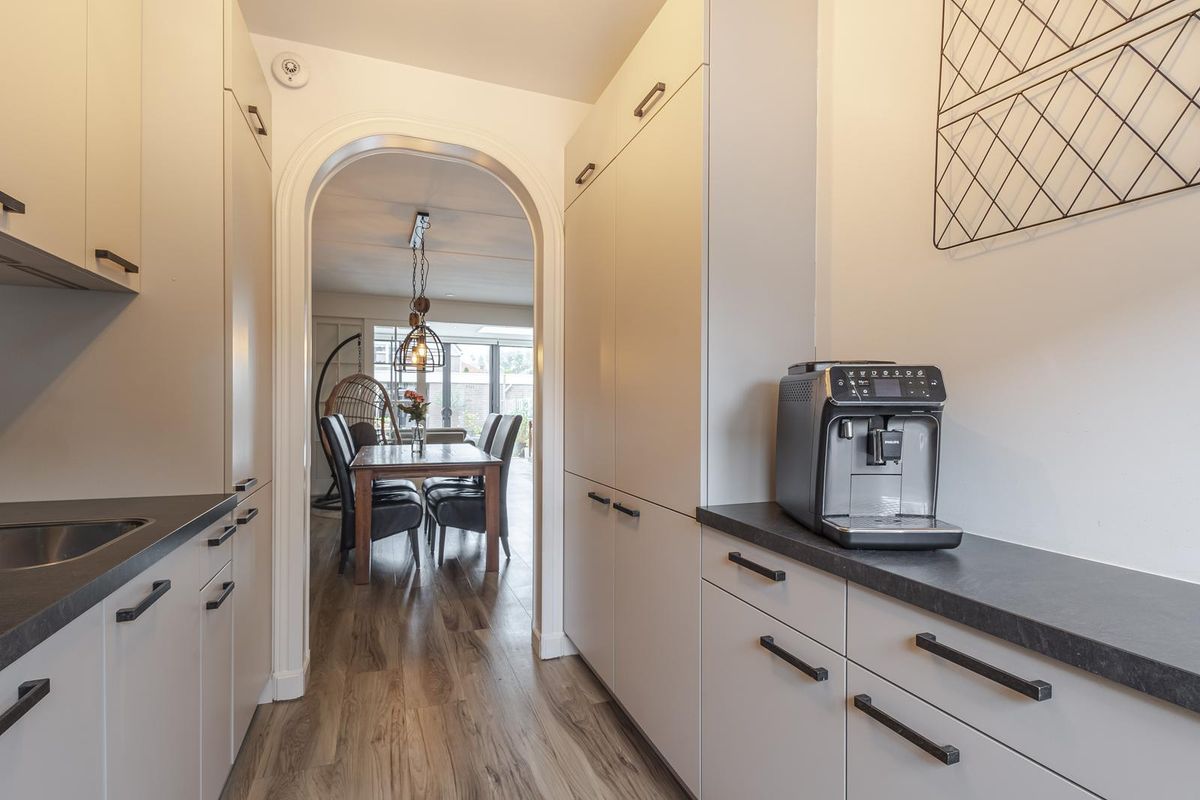 Je komt binnen in een ruime hal met toegang tot het toilet en de woonkamer. Dankzij de in 2017 gerealiseerde aanbouw aan de achterzijde is er een royale en sfeervolle leefruimte ontstaan met volop natuurlijk lichtinval. De moderne open keuken (2022) is een echte eyecatcher en voorzien van alle benodigde inbouwapparatuur, veel werkruimte en een eigentijdse uitstraling.