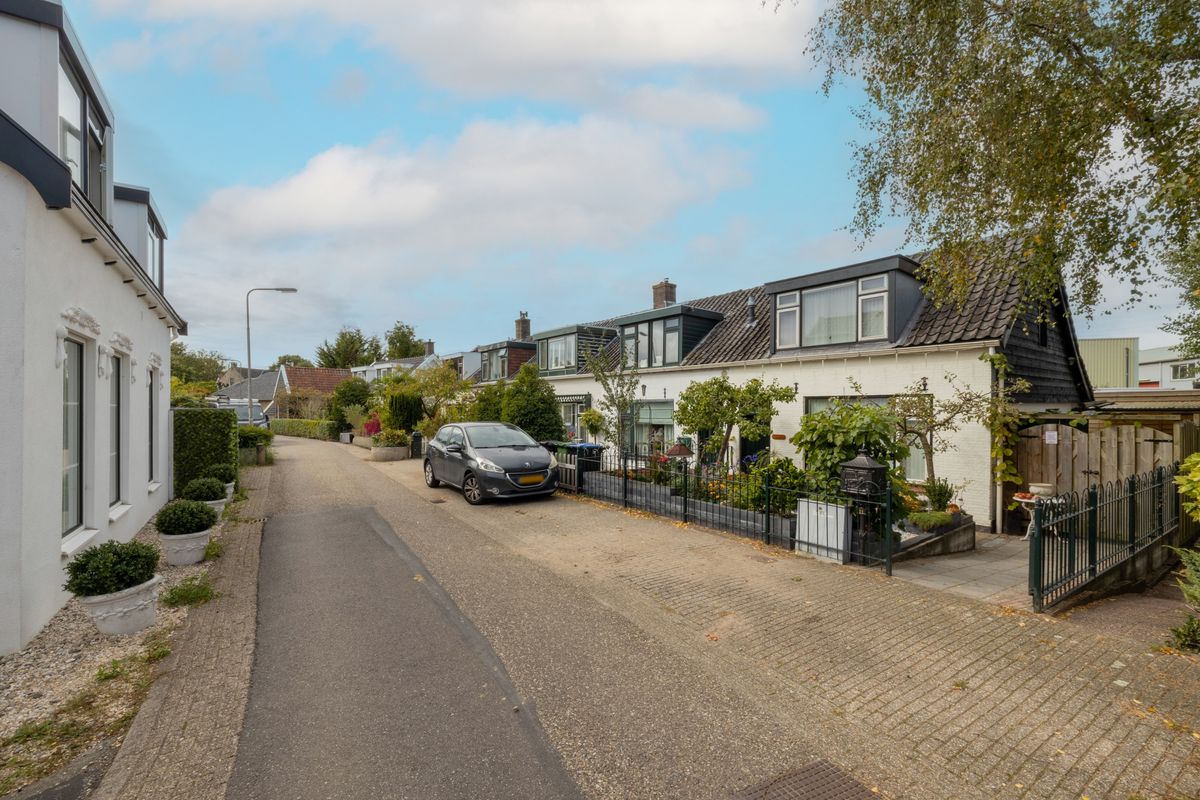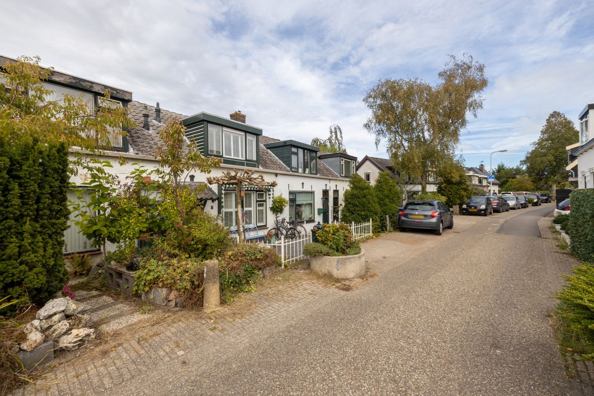 leuk is dat; het afdakje met originele pannen boven de deur. De leilinde boom zorgt ’s zomers voor