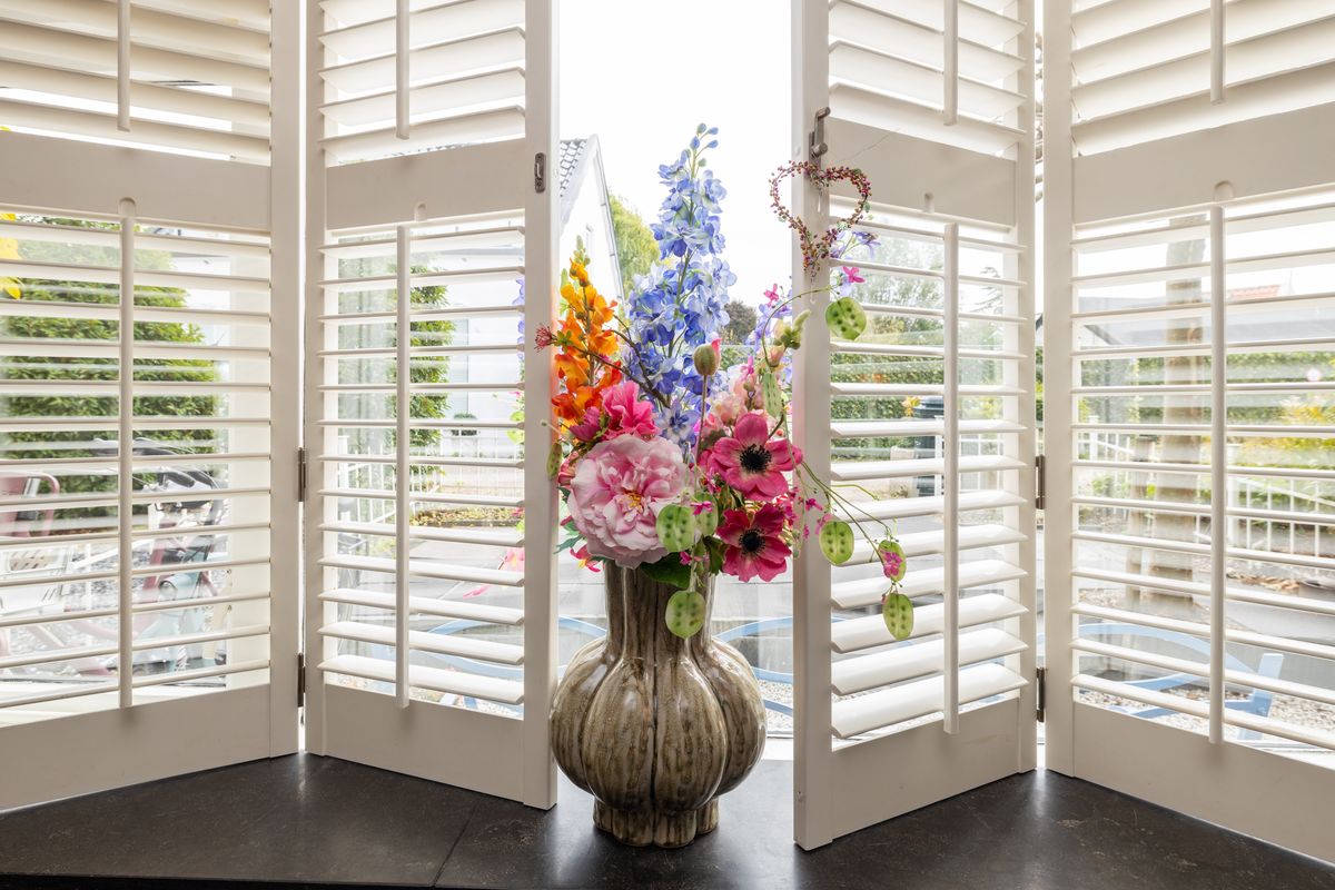 hoogzomerse temperaturen zorgen de houten louvre-panelen voor een stijlvolle buitensluiting van