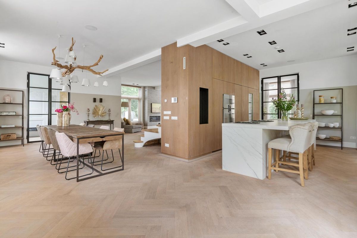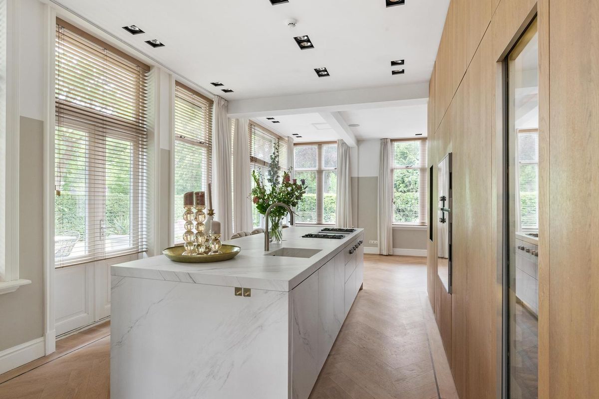De moderne woonkeuken is een culinaire speeltuin, voorzien van luxe apparatuur zoals een Gaggenau oven en stoomoven, een teppanyaki-plaat, een tweetal vaatwassers en een aparte wijnklimaatkast. Marmeren werkbladen, een ruim kookeiland en veel kastruimte maken het plaatje compleet.